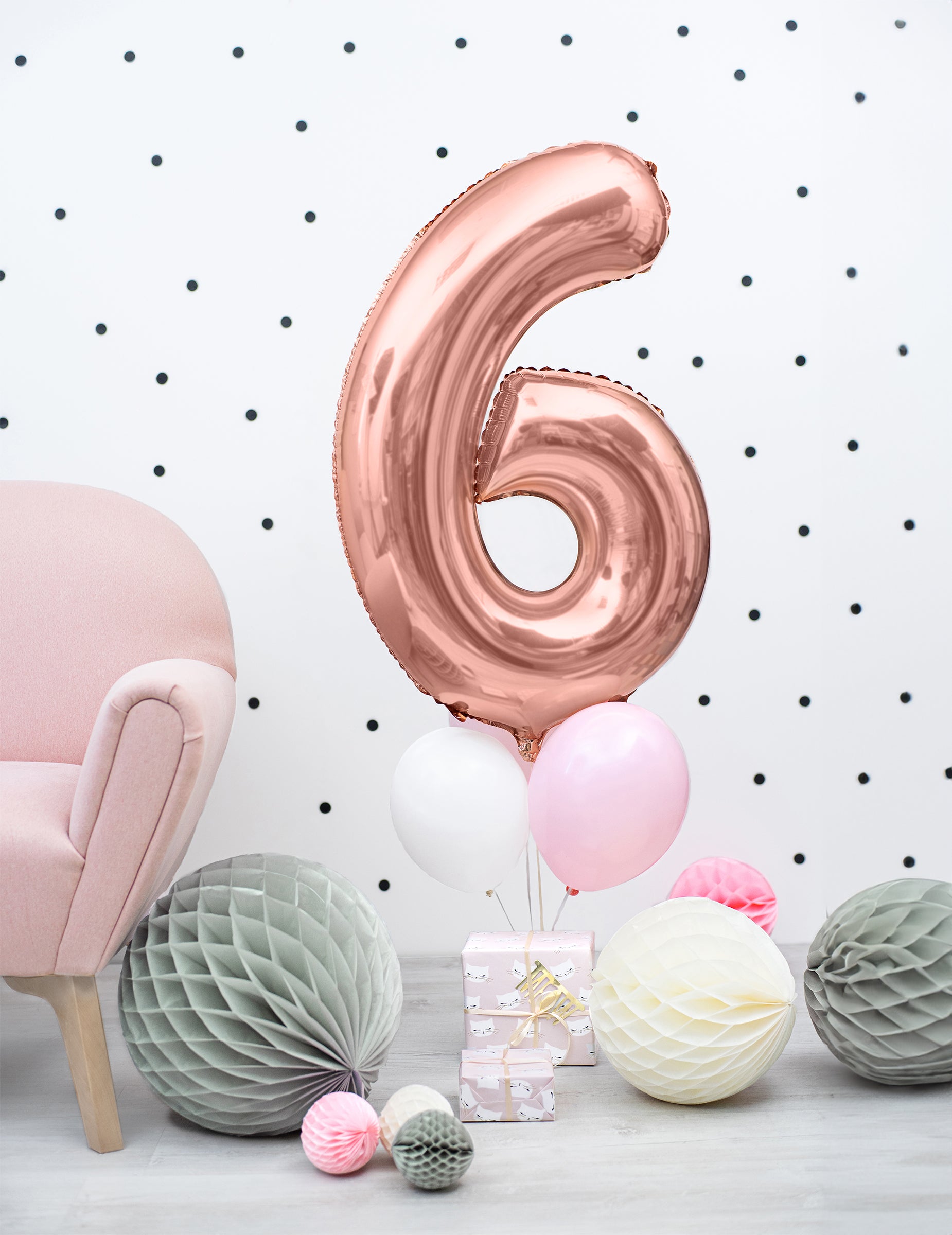 To aluminijasto balonsko balonsko zlato meri približno 85 cm napihnjenih. Izbirate lahko med številkami od 0 do 9. Napeljite ta helij ali zračni balon s slamo (ki ni priložena) in pustite, da plava ali obesi tako, da v očeh, ki so prisotne na kroglici, prenašate trak. Idealno bo za dekoracijo rojstnega dne poroke ali roza zlata!
