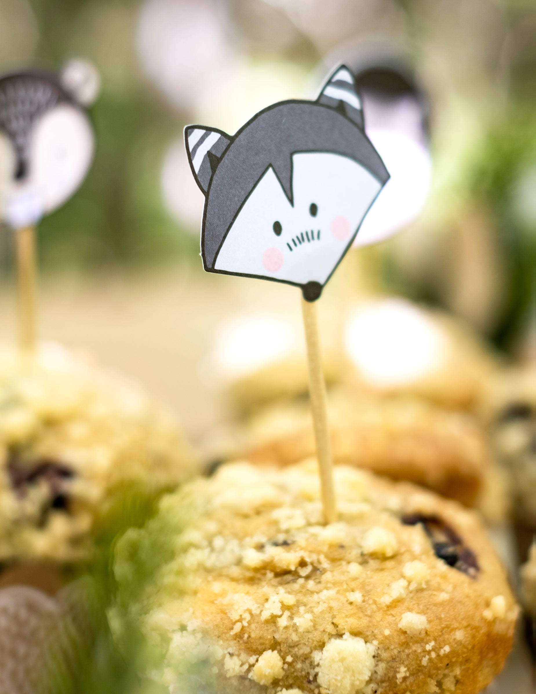 6 moules à cupcake en kraft et pics en bois animaux forêt