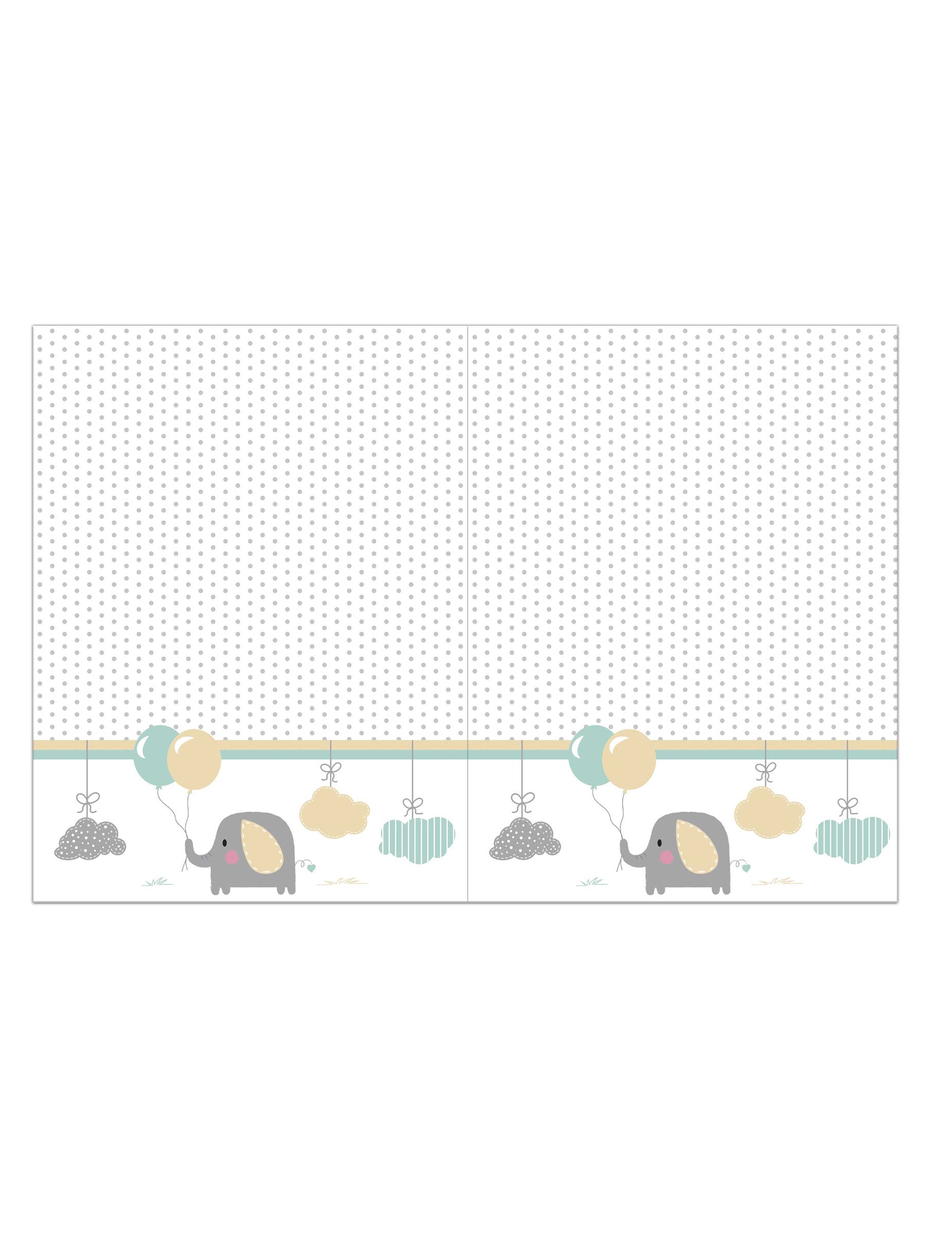 Popestrite svojo praznično mizo s tem prt iz plastike, dimenzije 120 x 180 cm. Ima očarljivo malo sloni lebdeči med oblaki in baloni v odtenkih sive, metine in slonovine. To prt bo idealen za ustvarjanje nežnega vzdušja med otroška zabava ali a rojstni dan.