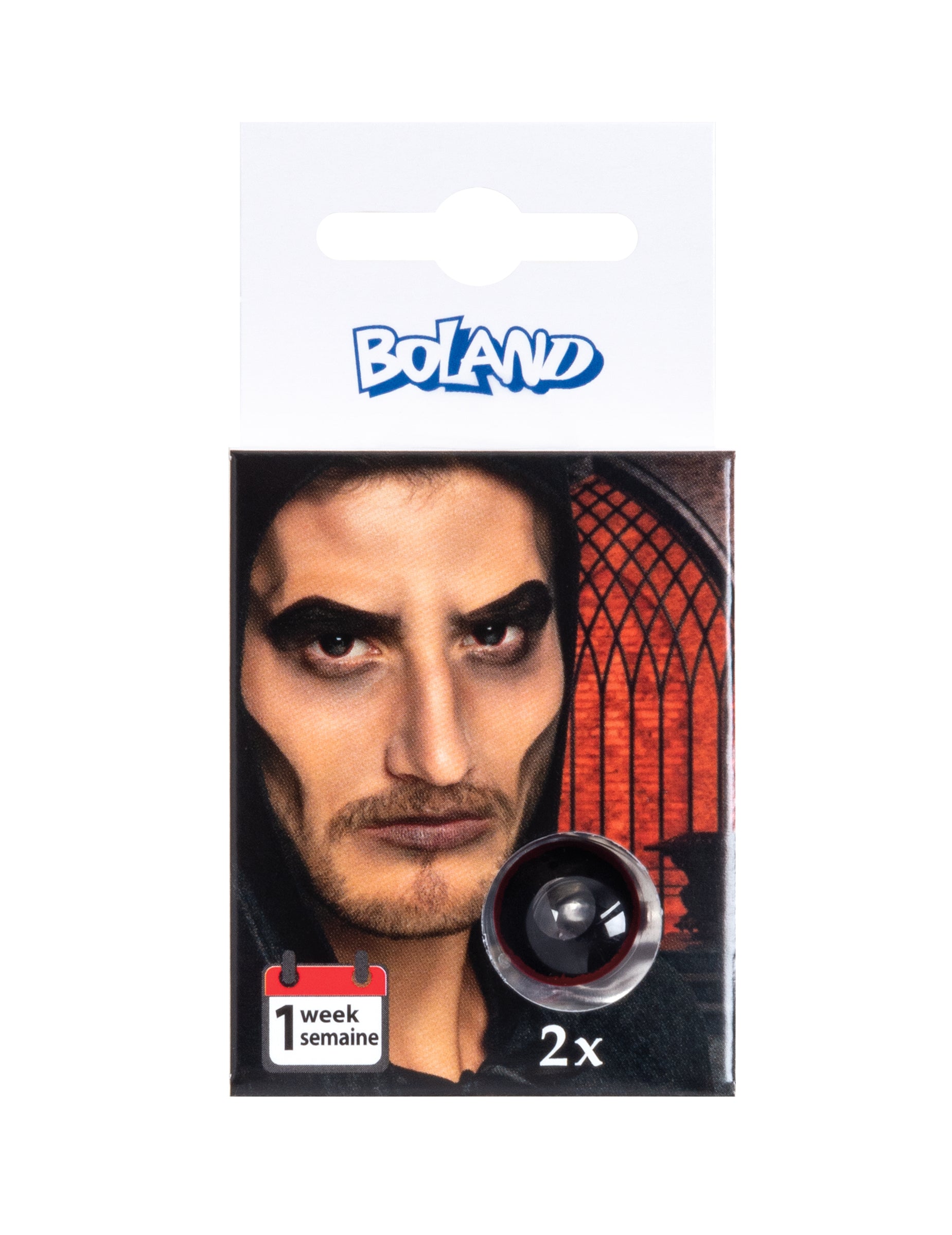 Te kontaktne leče brez domišljijske korekcije za odrasle so črne z rdečim obrisom in imajo premer 15 mm. Te domišljijske leče brez popravka ustrezajo standardom CE0120 - ISO9001 in jih je mogoče uporabiti 1 teden po odprtju. Pred uporabo glejte uporabniški priročnik, ki je priložen leče. Te črne in rdeče leče bodo kot nalašč za ogled vampirja, kot je grof Dracula ...