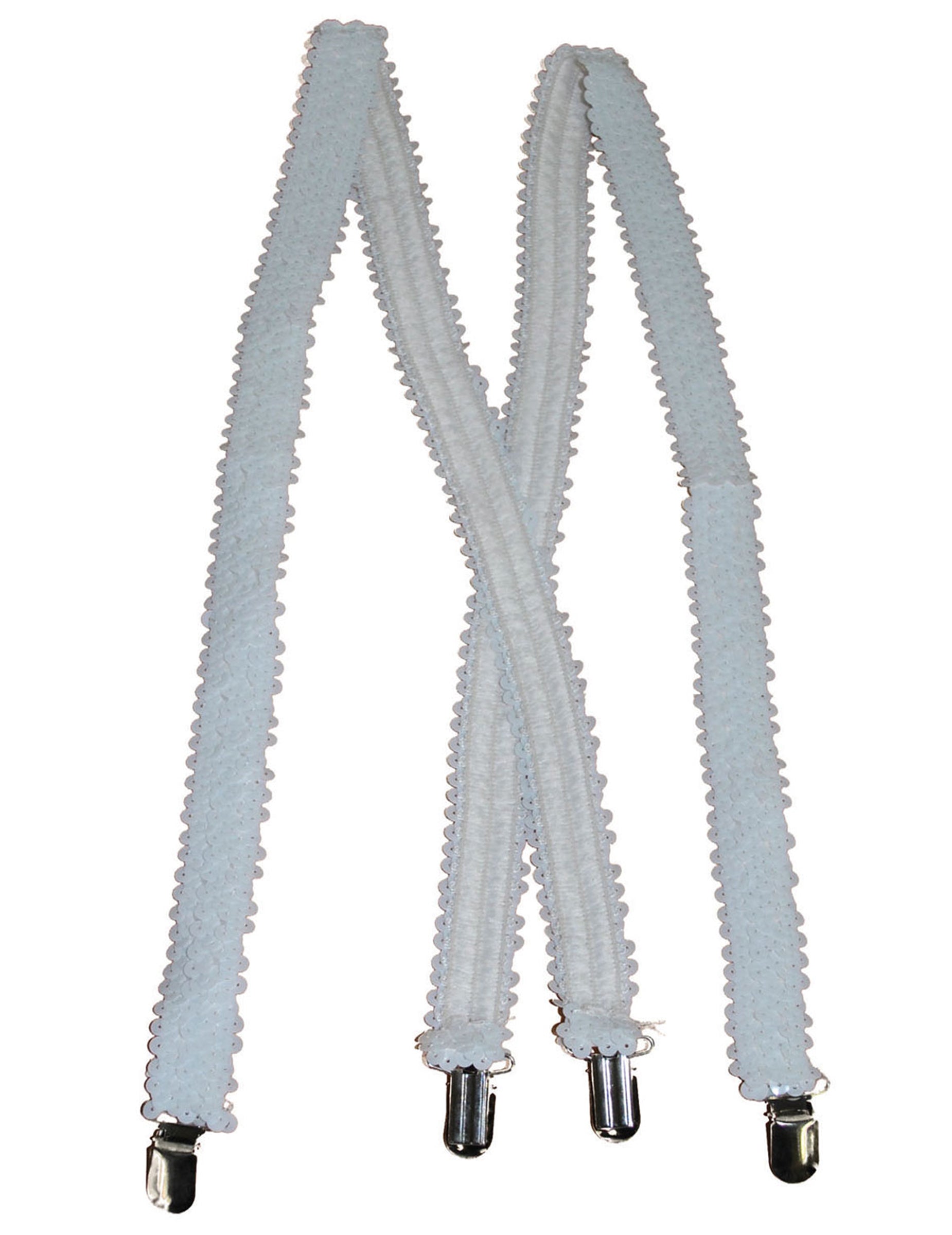 Ti trakovi za odrasle so elastični. Prekrite so z belimi pajkicami, ki jim dajejo zelo elegantno stran. Ti obešalniki bodo kot nalašč za dokončanje vašega šik kostuma ob karnevalu ali za novo leto.