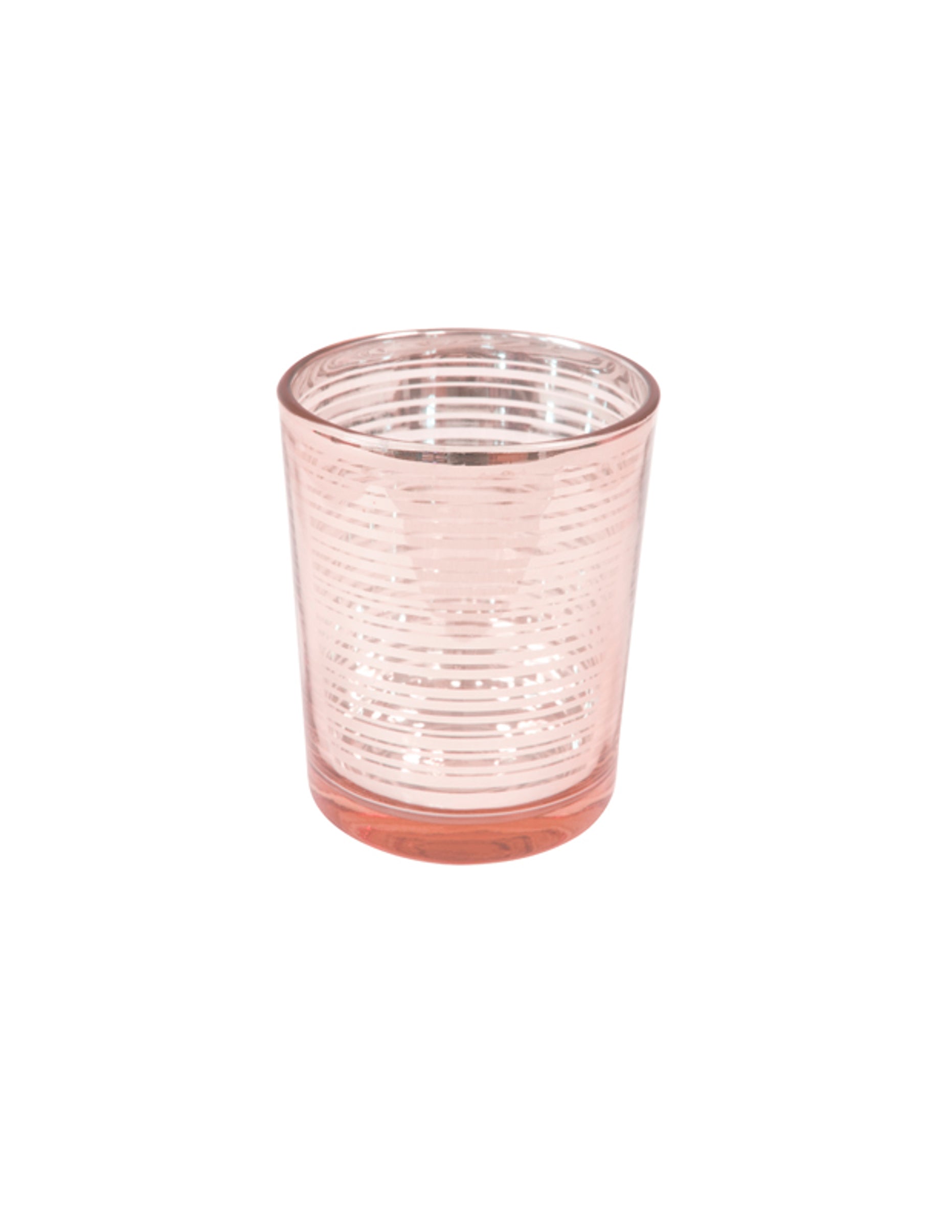 Ta stekleni fotofor je visok približno 6,8 cm. Okrašena je z zlatimi rožnatimi črtami. V notranjost lahko postavite svečo, nameščeno v grelniku. Ta fotofur bo oblekel vašo mizo med EVJF ali med poroko na temi Rose Gold!
