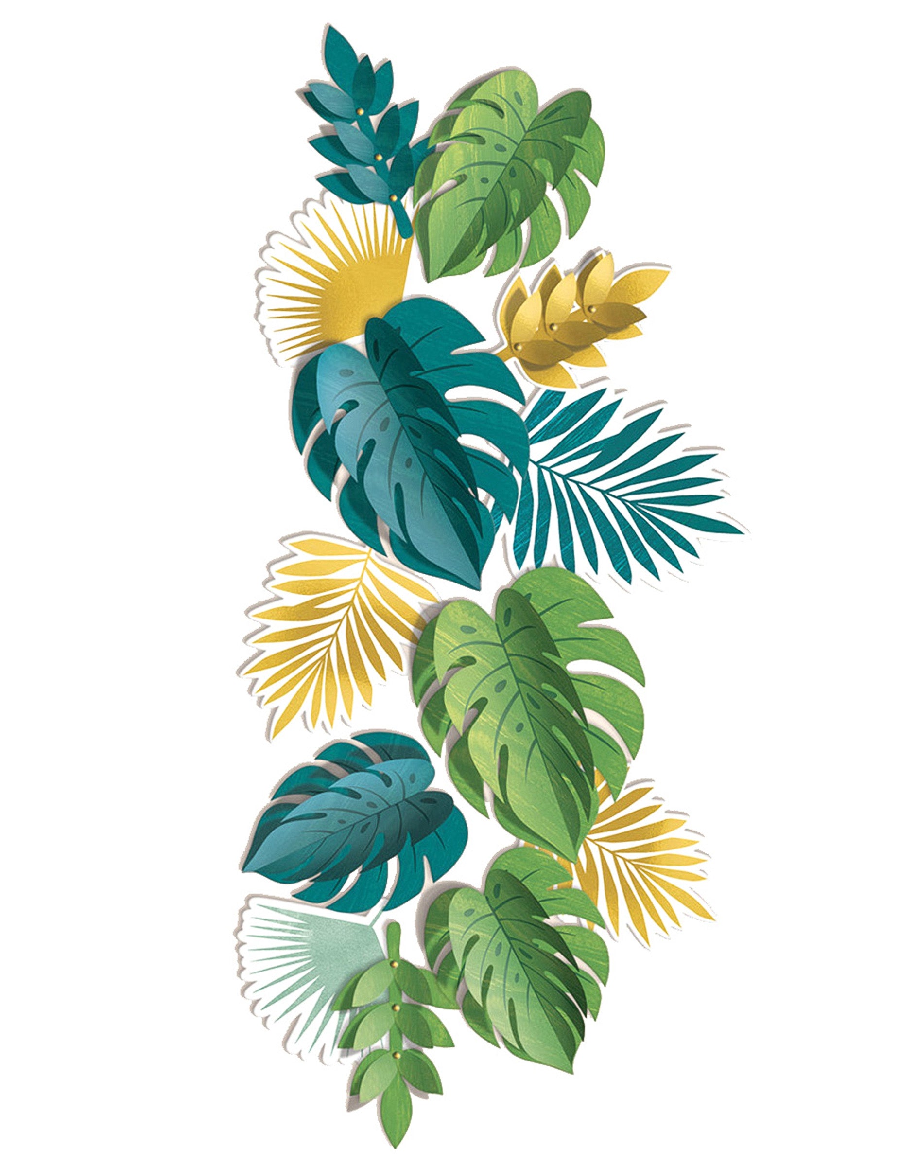 Idéal pour créer un centre de table luxuriant, orner un mur ou composer un arrière-plan de photobooth, cet ensemble est parfait pour une réception à thème tropicale chic.