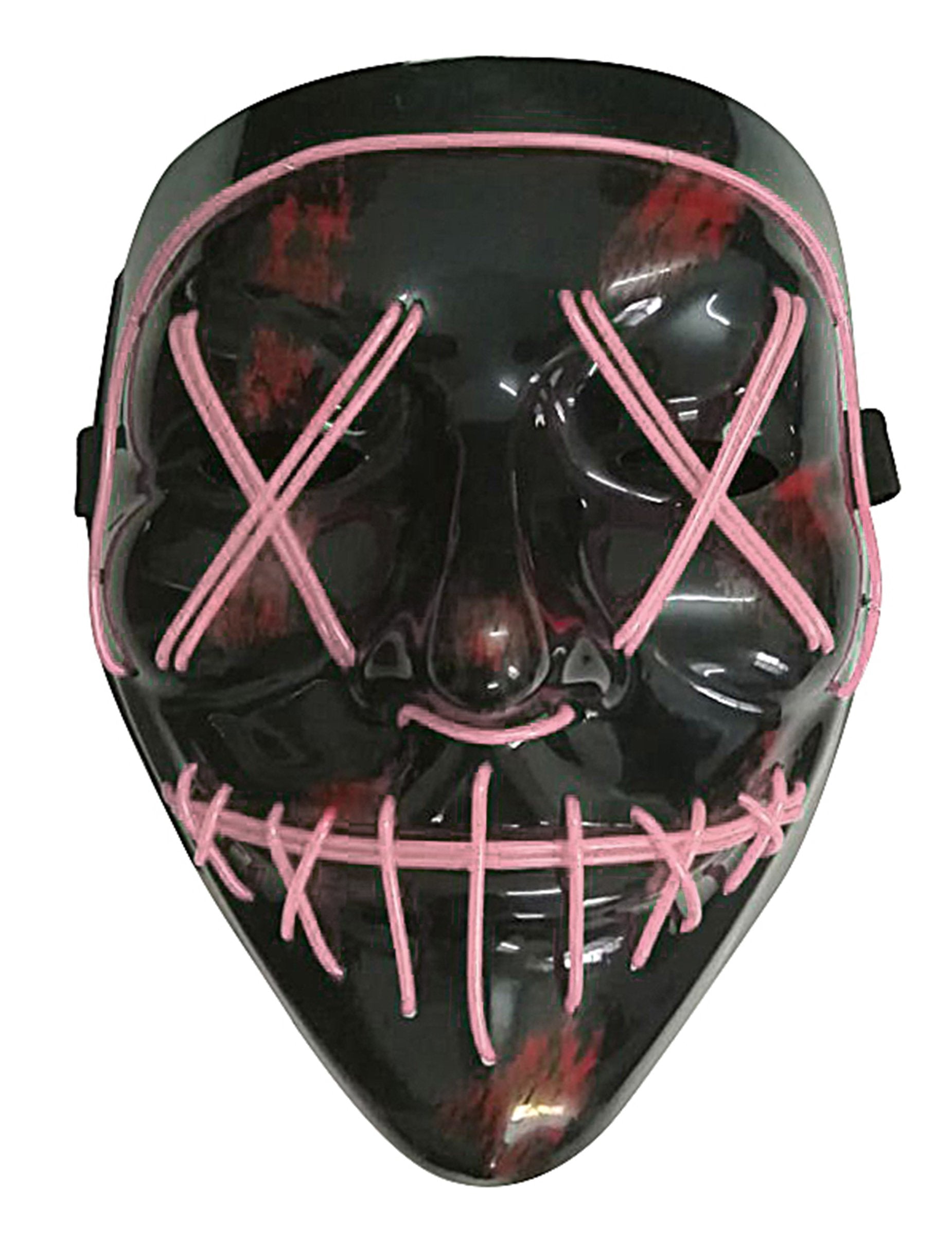 Ta lahka LED maska Fuchsia je plastika. To je maska za odrasle, ki meri 20x18 cm. Če ga vklopite v polni temni, lahko vidite moteč obraz, narejen iz LED nit Fuchsia, privezane okoli ust in oči. V dnevni svetlobi je maska povsem črna, a pikčana s krvnimi pikami ... Priča grozot prejšnje čarovnice! Da ga prižgete nič enostavnejšega: dve AA bateriji (nista vključena) nahranita ohišje. Ohišje in masko sta povezana z 1 metrom kabla, kar mu omogoča, da ga da v žep in prosto premikanje! Imate 4 različne načine osvetlitve: stabilna (fiksna luč), počasna bliskavica, hitro in izklopljeno bliskavico. Oddaja svetlobe je hladna, to pomeni, da se LED žice ne bodo segrevale, ko je maska vklopljena! Auncun nevarnost za zdravje! Za noč čarovnic oblikujte krvav par, tako da nosite to LED masko Fuchsia in na primer še eno modro masko! Od 21. ure je vse dovoljeno ...