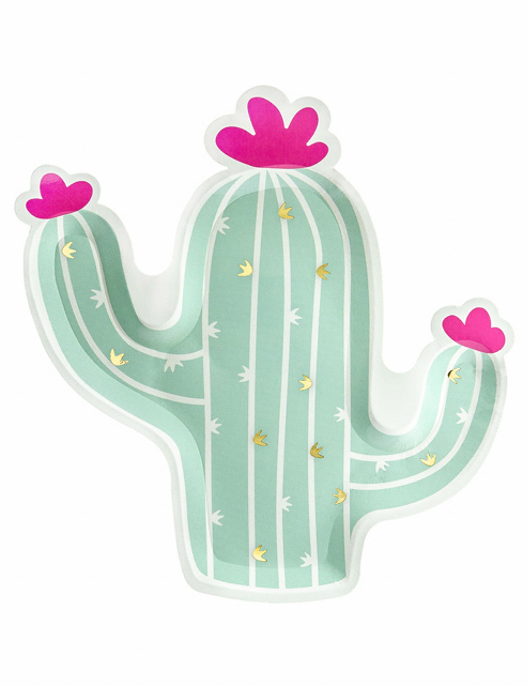 6 kartonskih krožnikov v obliki kaktusa v barvi mete, fuksije in zlata, 23 x 24 cm
