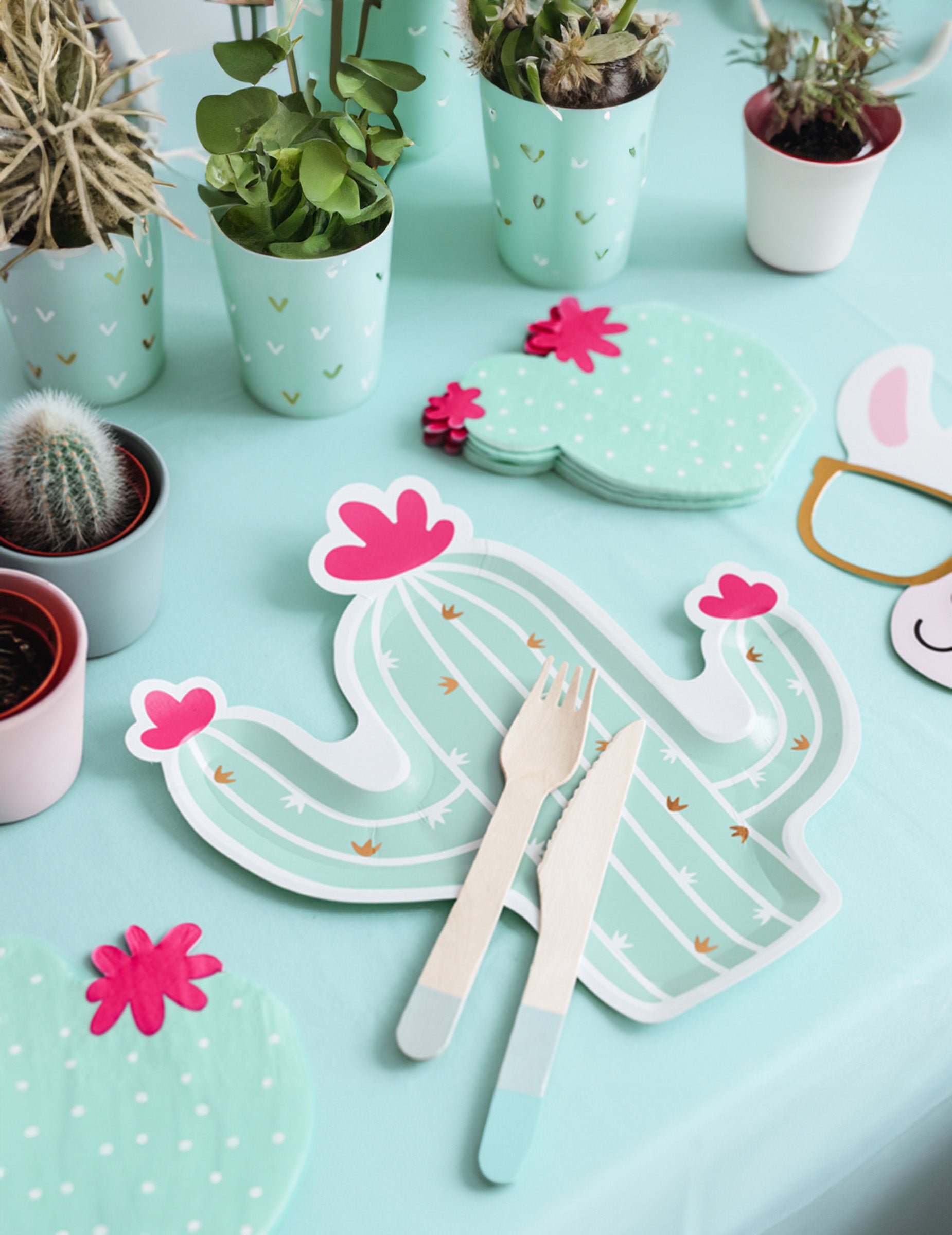 Ta paket vsebuje 6 krožniki Predmeti za enkratno uporabo iz kakovostnega kartona. Z motivom kaktus Ti originalni namizni dodatki so v odtenkih mete in fuksije, okrašeni z majhnimi trni z belimi in zlatimi poudarki.
