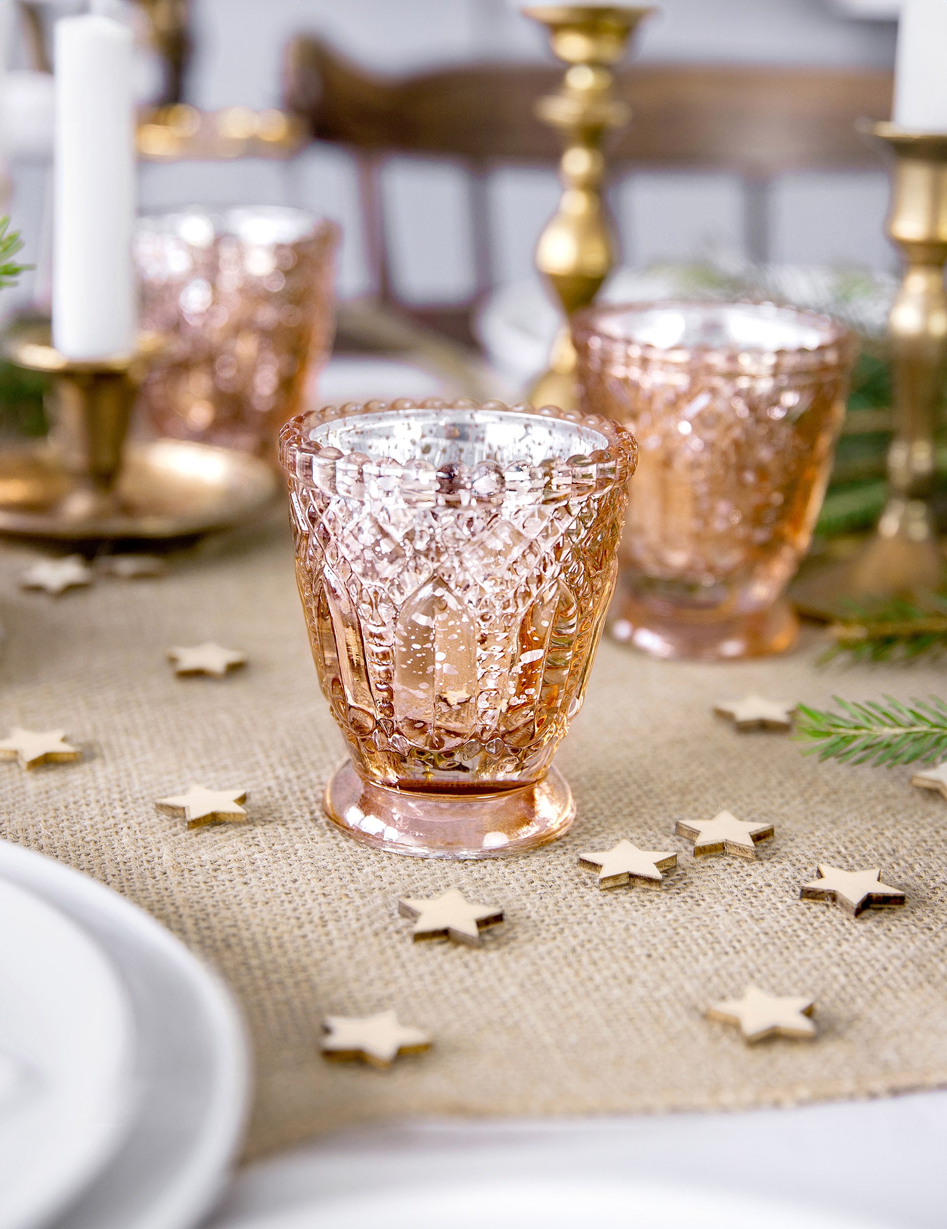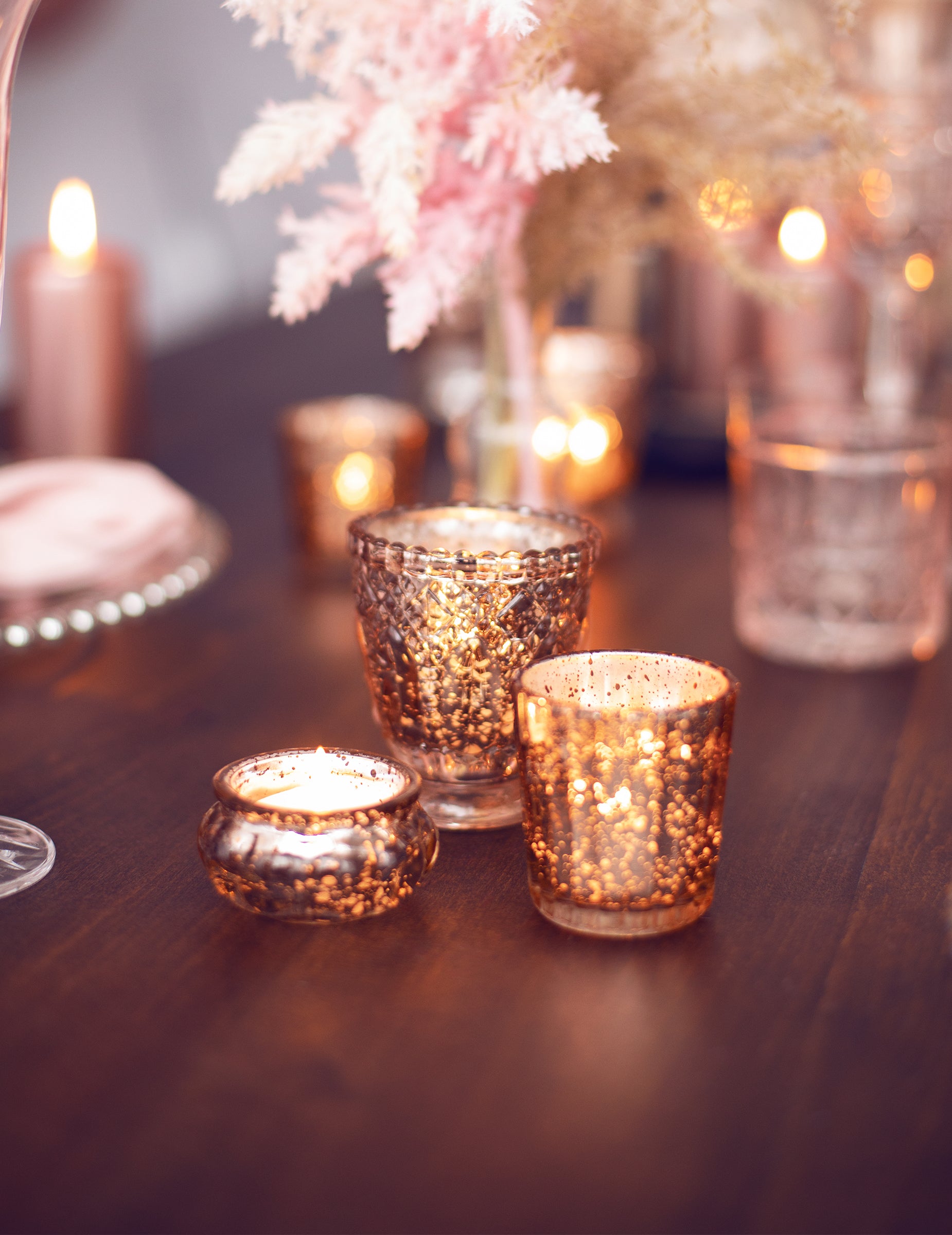4 svečniki iz rožnatega zlata 8 cm poročna dekoracija