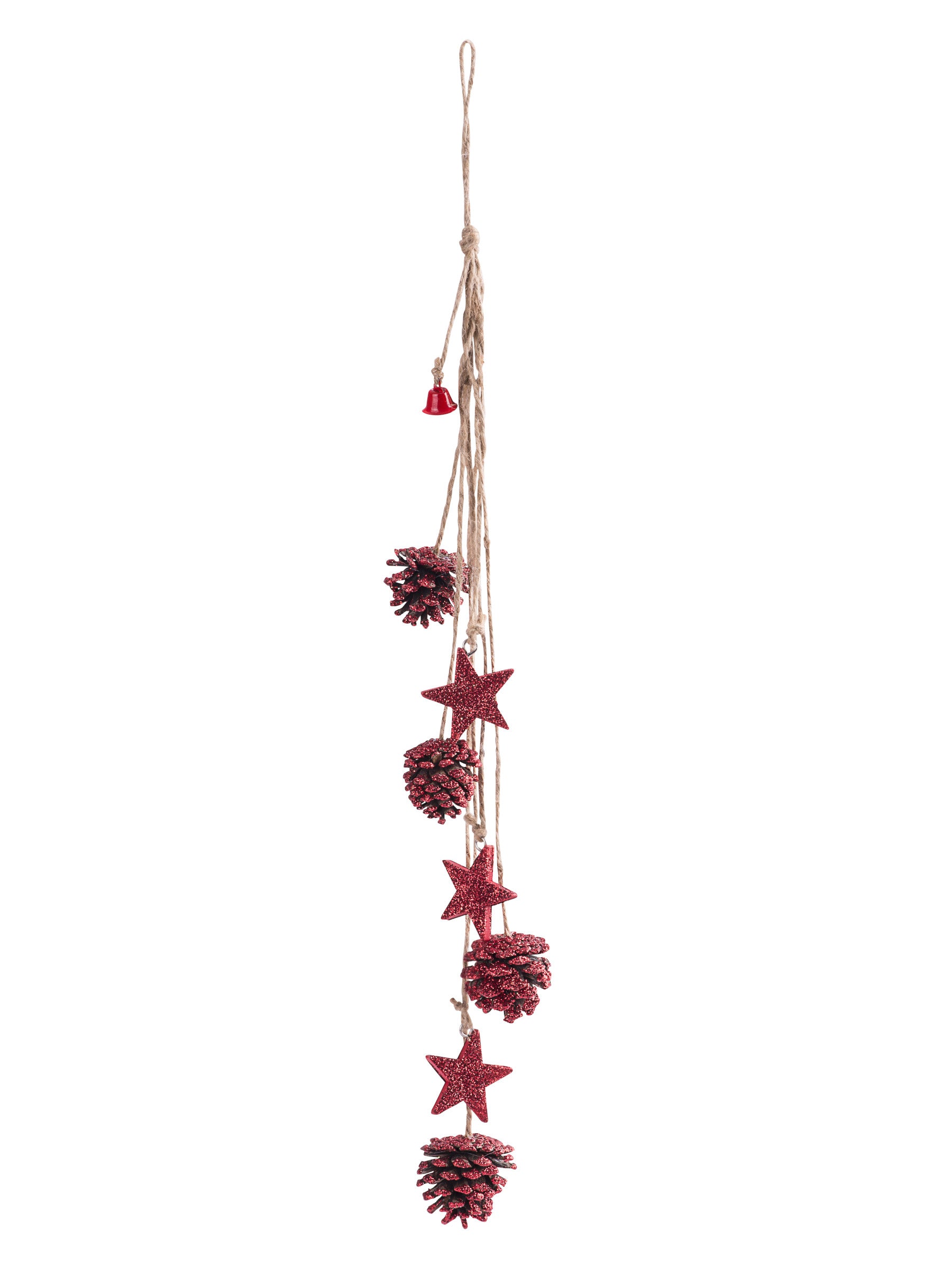 Dekoracija za obešanje iz rdečega bleščečega storža in zvezde, 50 kosov cm
