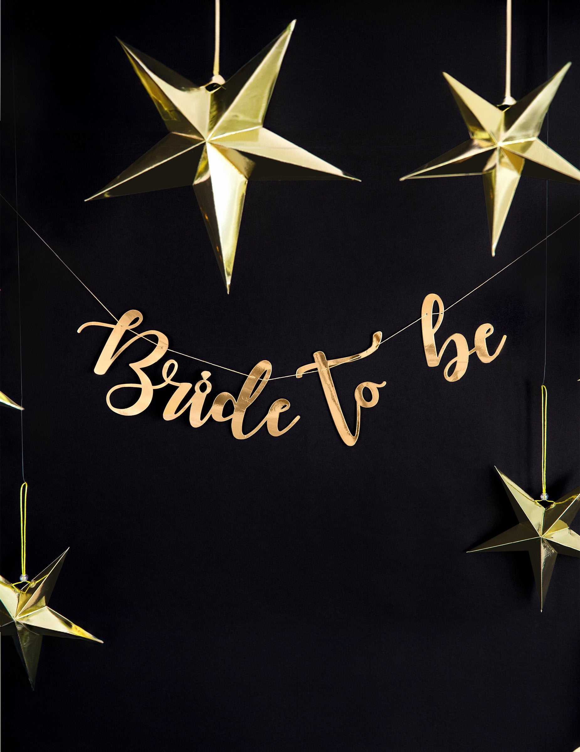 Ta girlanda meri približno 80 x 19 cm, narejen je iz kovinskega zlatega kartona in ima napis "nevesta, da je". Zlata barvna vrvica je dolga približno 150 cm. Ta girland bo za svoj okras za EVJF norosti prinesel končni pridih!