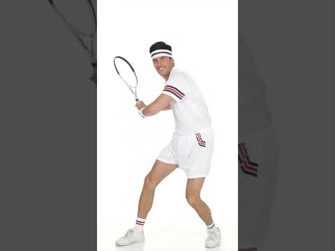 Ta teniški predvajalnik za odrasle ima polo majico, kratke hlače in trakove (lopar, gobice, nogavice in superge niso vključene). Lepolo kratki rokavi so beli barvi z logotipom "tenis Allstars". Rdeči in črni pasovi so prisotni na kratkih rokavih. Kratke hlače se ujemajo s polo majico. Je bela z rdečimi in črnimi trakovi na stegnu. Končno bela in črna beandeau dopolni ta kostum teniškega igralca. S tem teniškim kostumom utelešajte športno zvezdo za karneval ali tematski večer