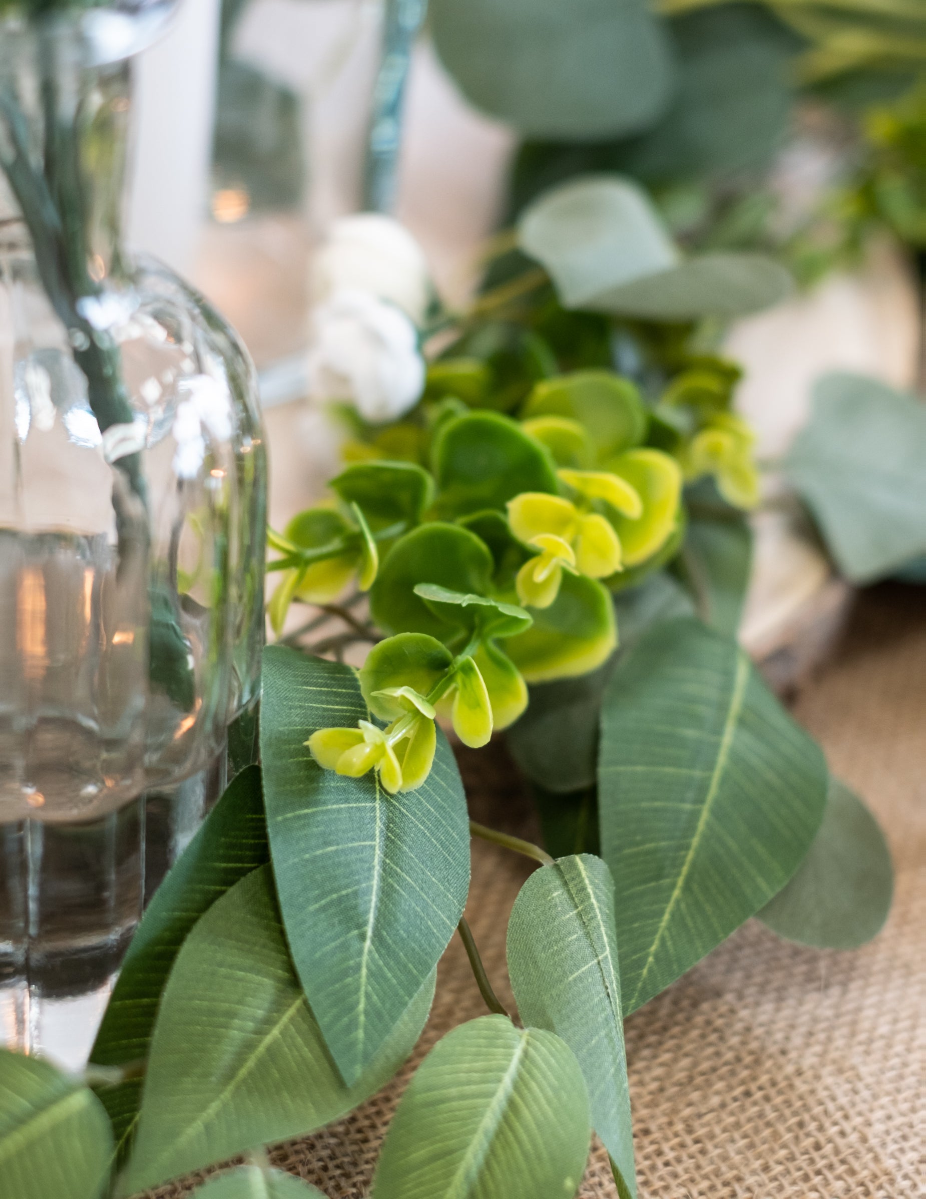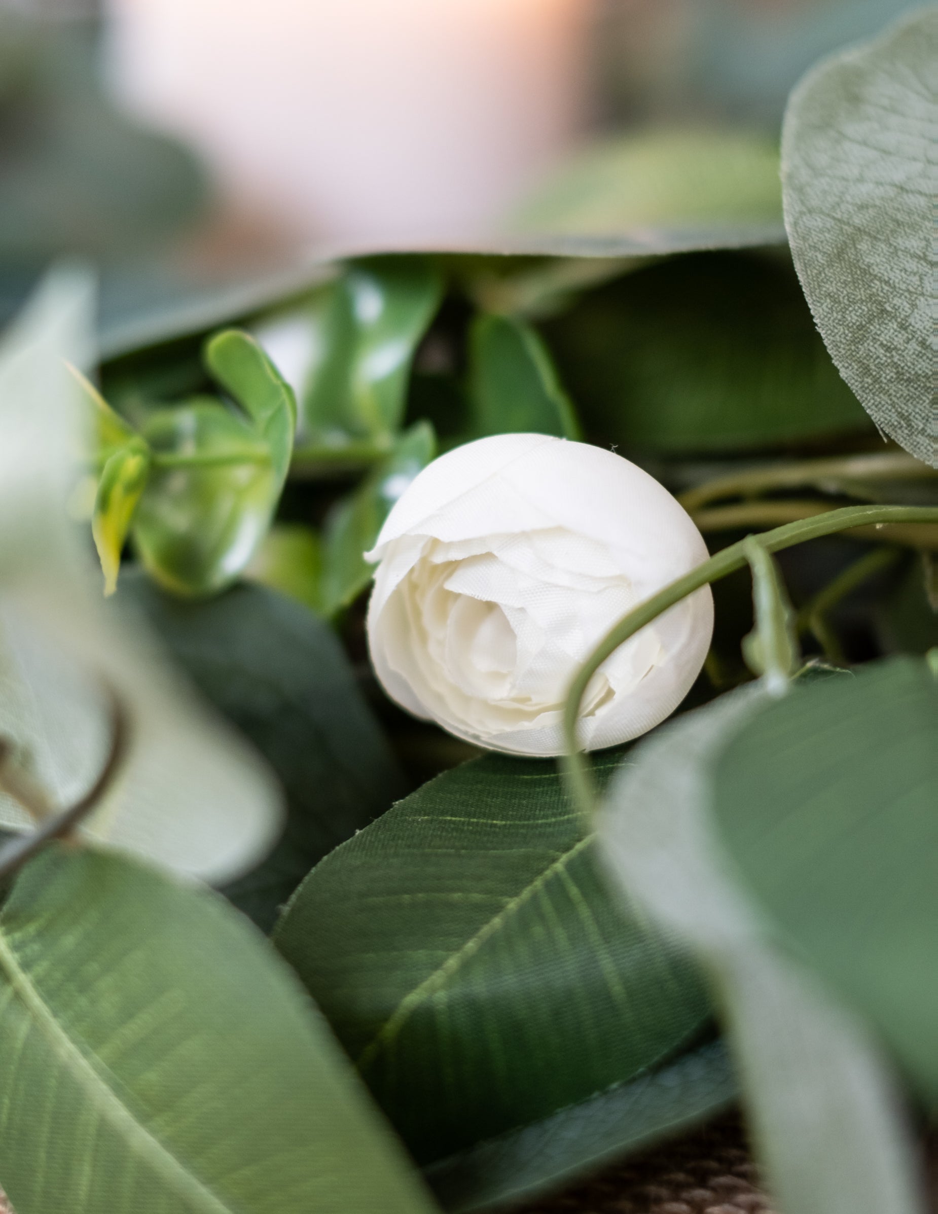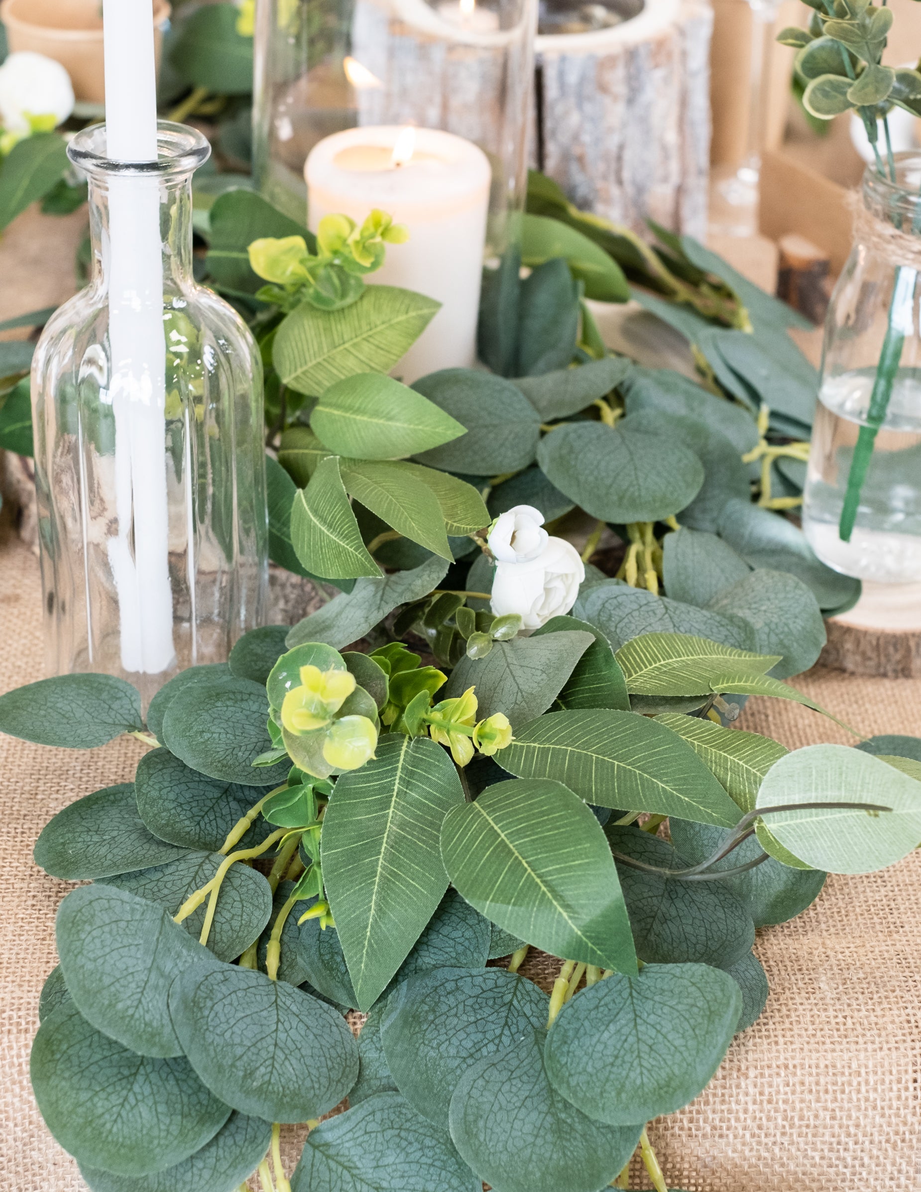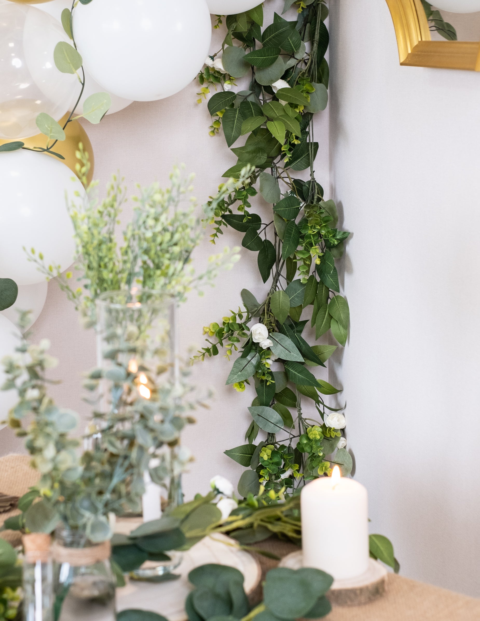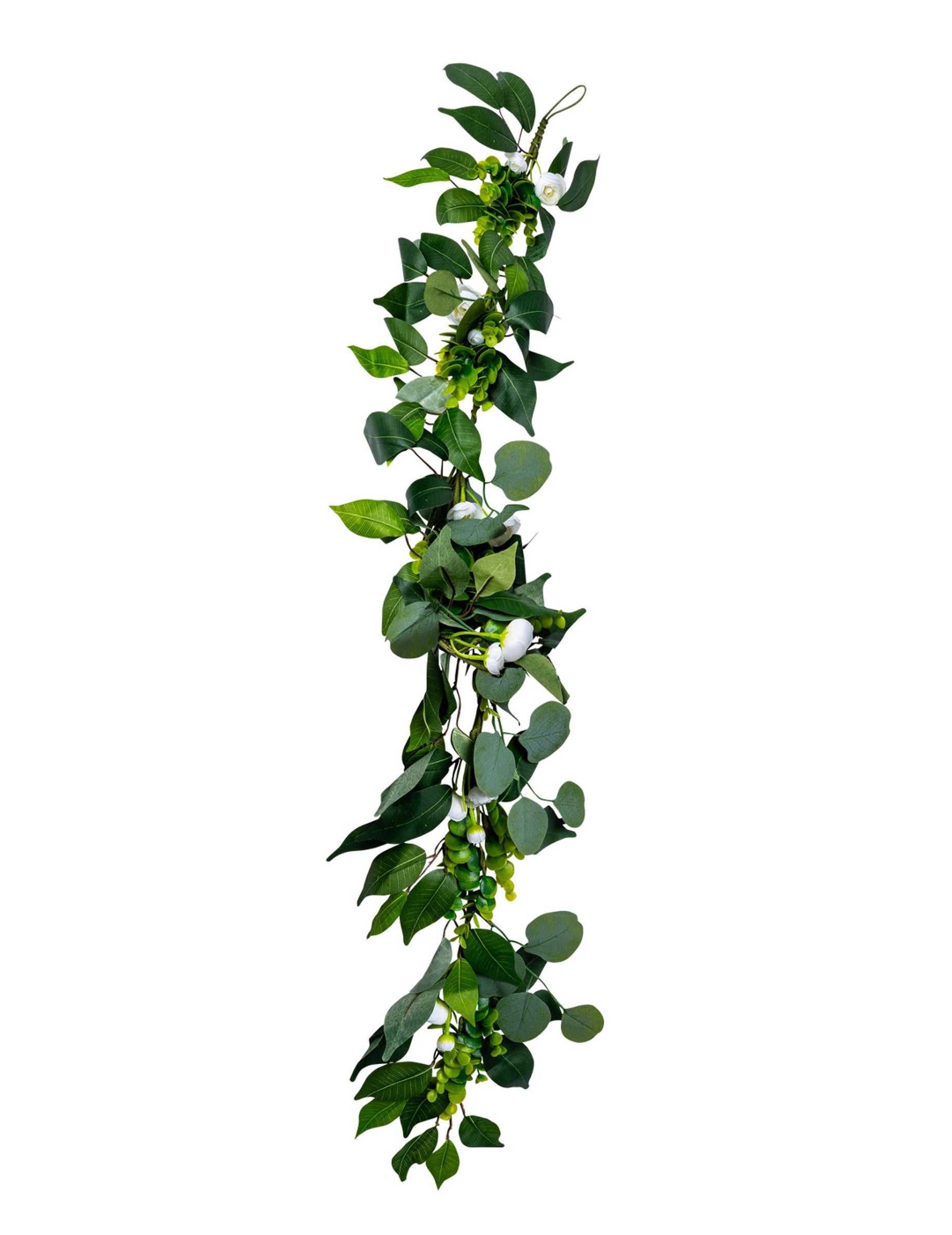 1,40 m dolga girlanda iz belih potonik, lovorja in evkaliptusa za poroke