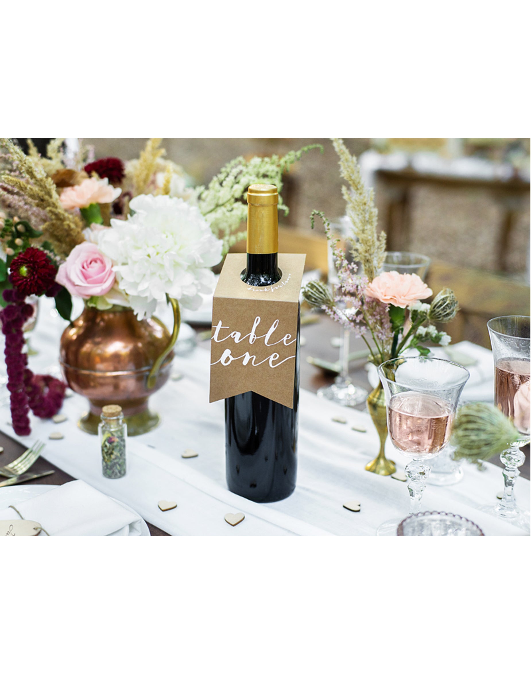 Ta komplet vsebuje 10 številke miz za steklenice Izdelano iz naravnega kraft kartona. Vsaka etiketa meri približno 18,5 x 8 cm. Oznake od "miza ena" do "miza deset" so natisnjene v elegantni beli tipografiji. Praktične so te številke miz Opremljene so z okroglo odprtino, ki omogoča enostavno obešanje na vrat steklenic vina ali vode. namizne figure z avtentičnim slogom so idealen dodatek za oštevilčite svoje mize in vodite svoje goste med vašim poroka rustikalno ali boemsko.