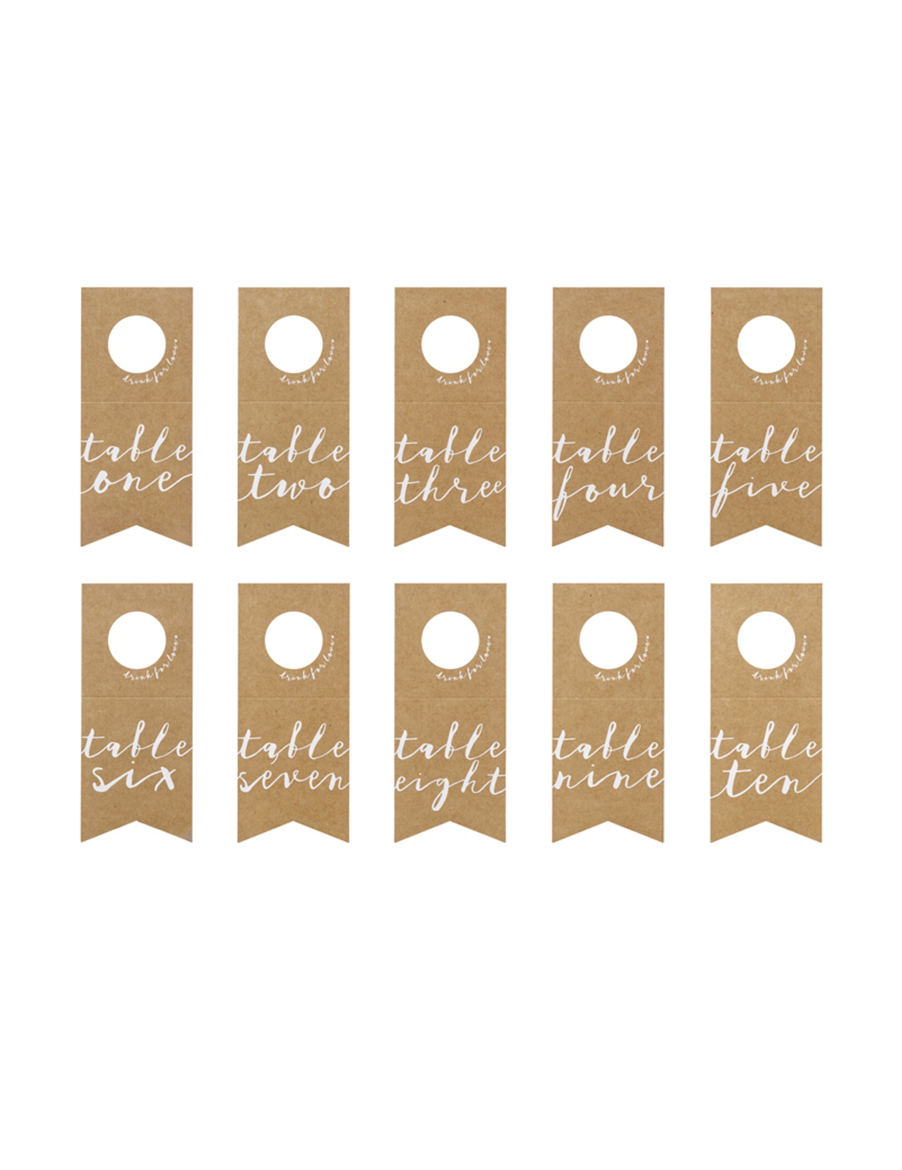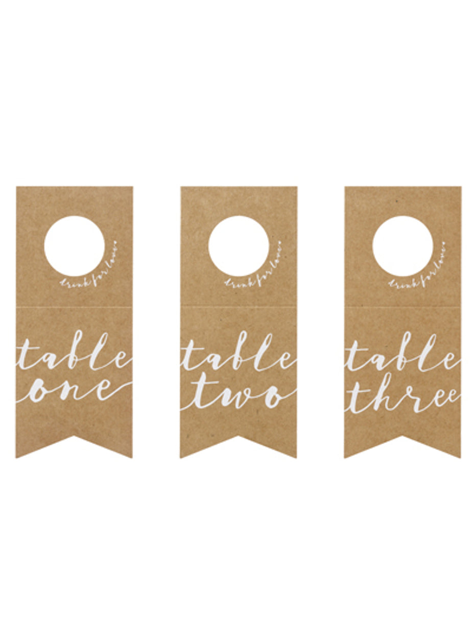 10 namiznih markerjev iz kraft papirja za steklenice z belimi številkami