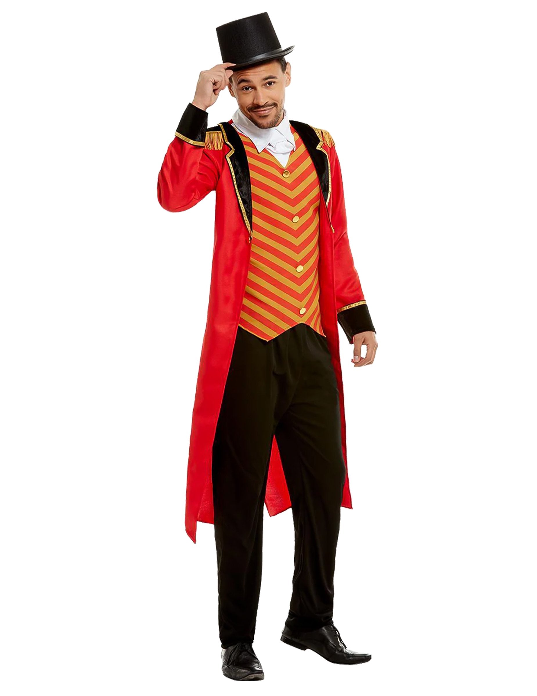To preobleko monsieurja Lojal za moške je sestavljeno iz jakne, platrone in hlač (klobuk in čevlji niso vključeni). Dolga jakna je rdeča s črno vzvratno. Zlate črte prinesejo lep zaključek. Plastron predstavlja rdeč in rumen telovnik ševrona. Zlati gumbi so spredaj prišita. Bolj trezne hlače so navadne črne. Ta kostum bo kot nalašč za udeležbo na zabavi na temo cirkusa ali preprosto med karnevalom.