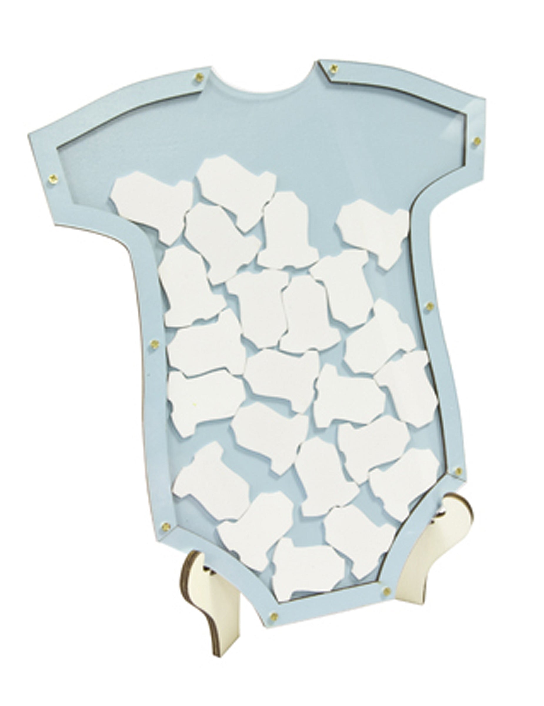 Odkrijte to moder okvir v obliki bodija približno 25 x 24 cm, Zabaven način za popestritev vašega dogodka. Vaši najdražji lahko napišejo svoja sporočila na 24 majhnih lesenih voščilnic, ki so priložene, preden jih nežno vstavijo v za to namenjeno režo. Naj gre za čestitke ali stave na ime dojenčka, vsaka voščilnica velikosti 2,5 x 3,5 cm ... cm bo ohranil dragocen zapis tega trenutka. okvir elegantno izstopa kot odlična alternativa knjiga gostov Tradicionalen način za ohranitev nepozabnega spominka na vašo otroško zabavo.