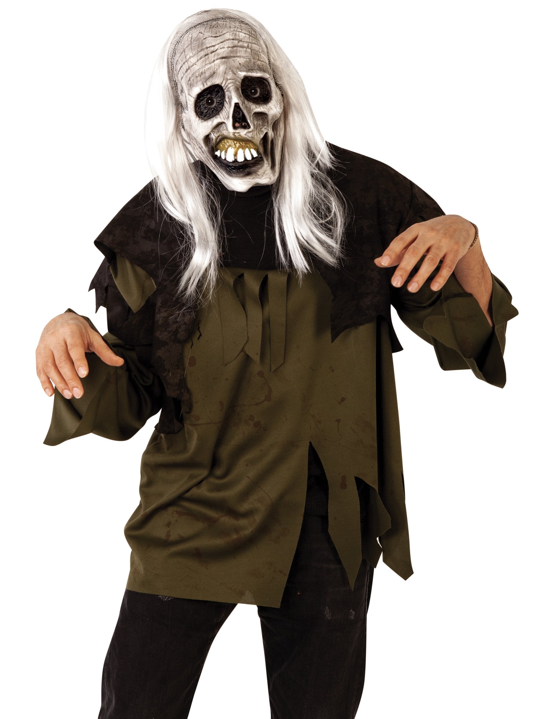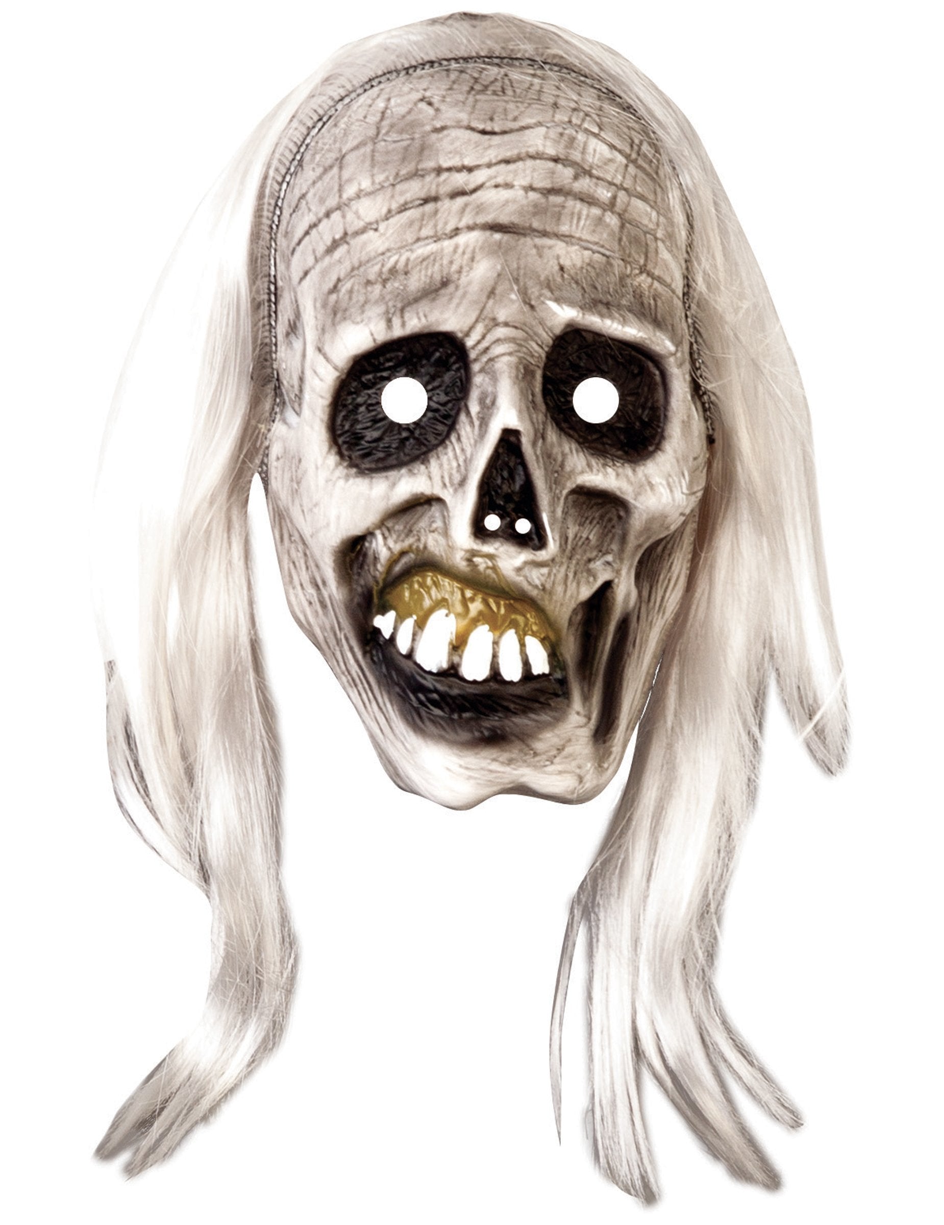 Ta parcela je sestavljena iz maske z lasuljo za odrasle (vrh ni vključen). Ta maska ​​predstavlja glavo zombija z gnili zobmi in dlesnimi. Bela in dolga lasulja je neposredno prišita na maski, da bi prinesla še več realizma! Zombie maska ​​kot nalašč za dokončanje vaše obleke in utelešenje znanih zombijev znane TV serije med noč čarovnic!