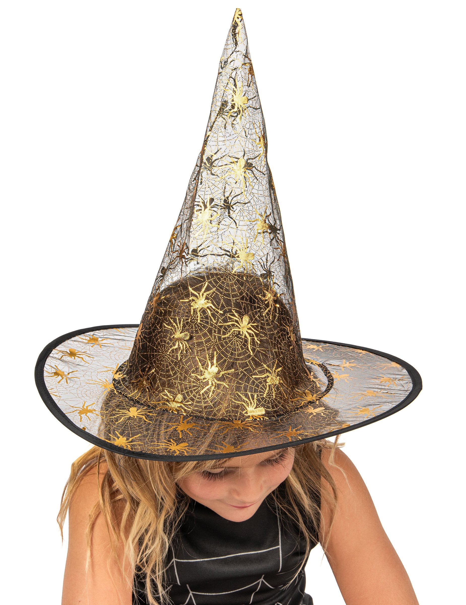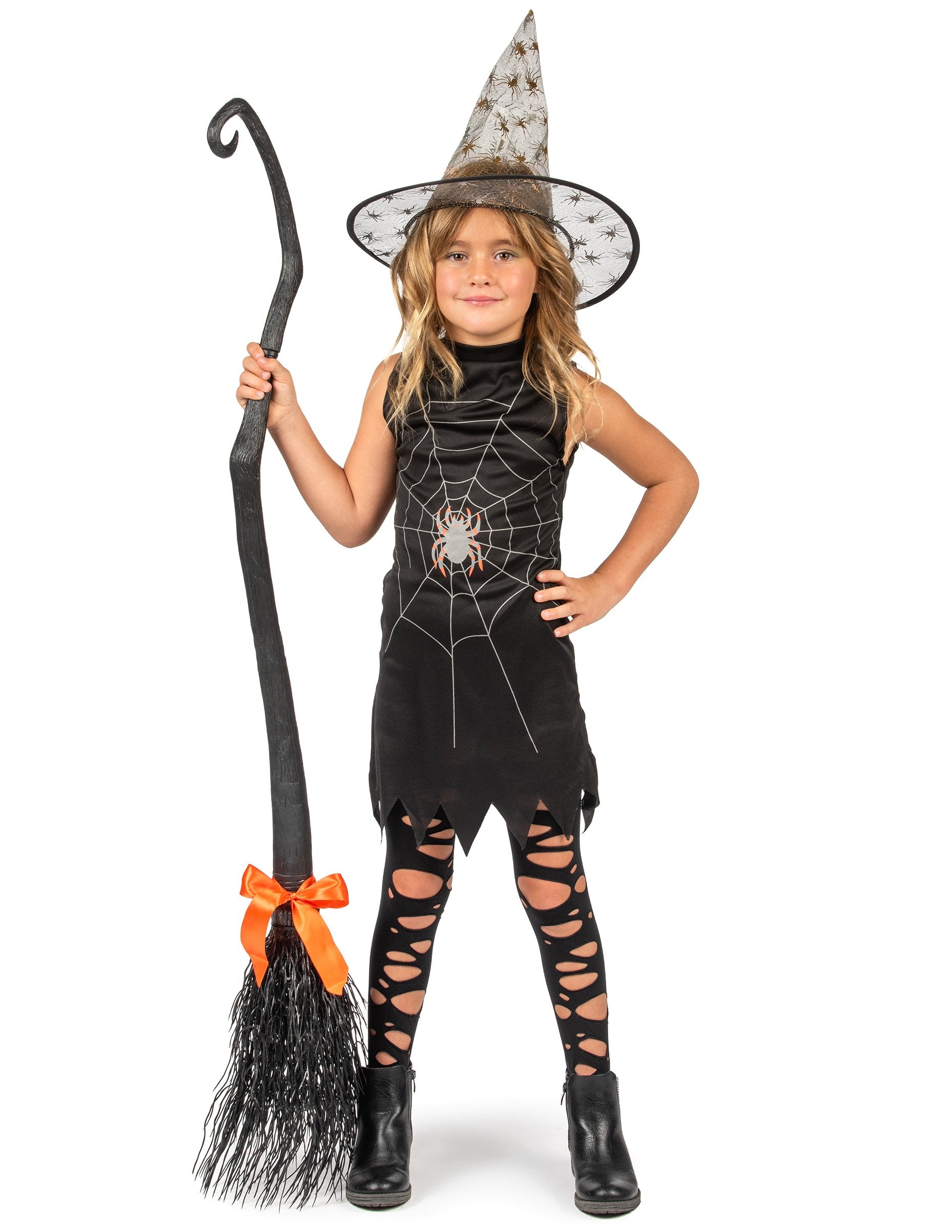 Ta čarovnica je sestavljena iz obleke in klobuka (nogavice niso vključene). Črna obleka je brez rokavov in je okrašena s pajkom na svojem platnu. Dno obleke je razrezan v konici. Čarovnica je narejena iz črne prozorne tkanine. Pojdite na lov na bonbone, tako da se na noč čarovnic preoblečete kot prava čarovnica!
