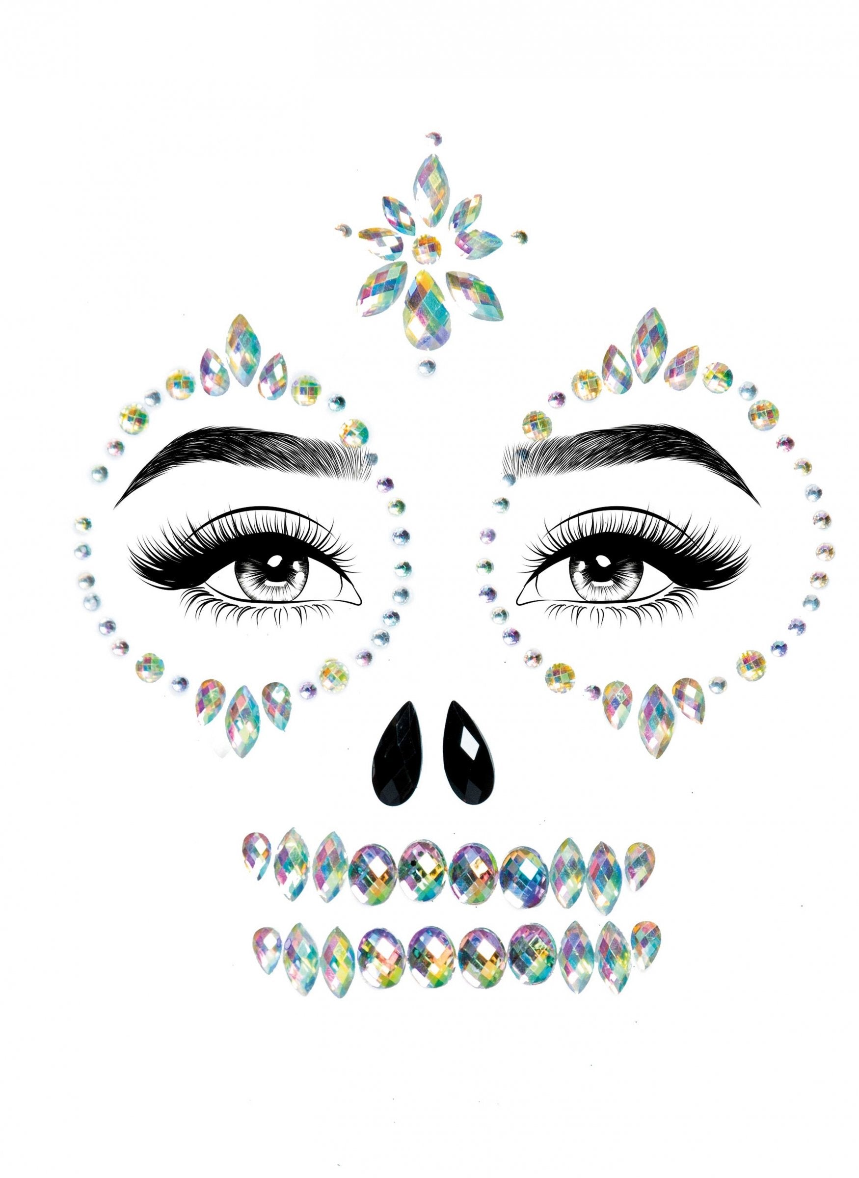 Ti nakit za skeletno obraz so lepili. Ta nakit je sestavljen iz veličastnih lažnih kovinskih kamnov. Preprosto morate sleči norine, da jih prilepite na kožo. Ta lepilni nakit je enostaven za uporabo in kože ne agredira. Ta lepilni skeletni nakit bo kot nalašč za dokončanje vaše skeletne obleke za noč čarovnic!