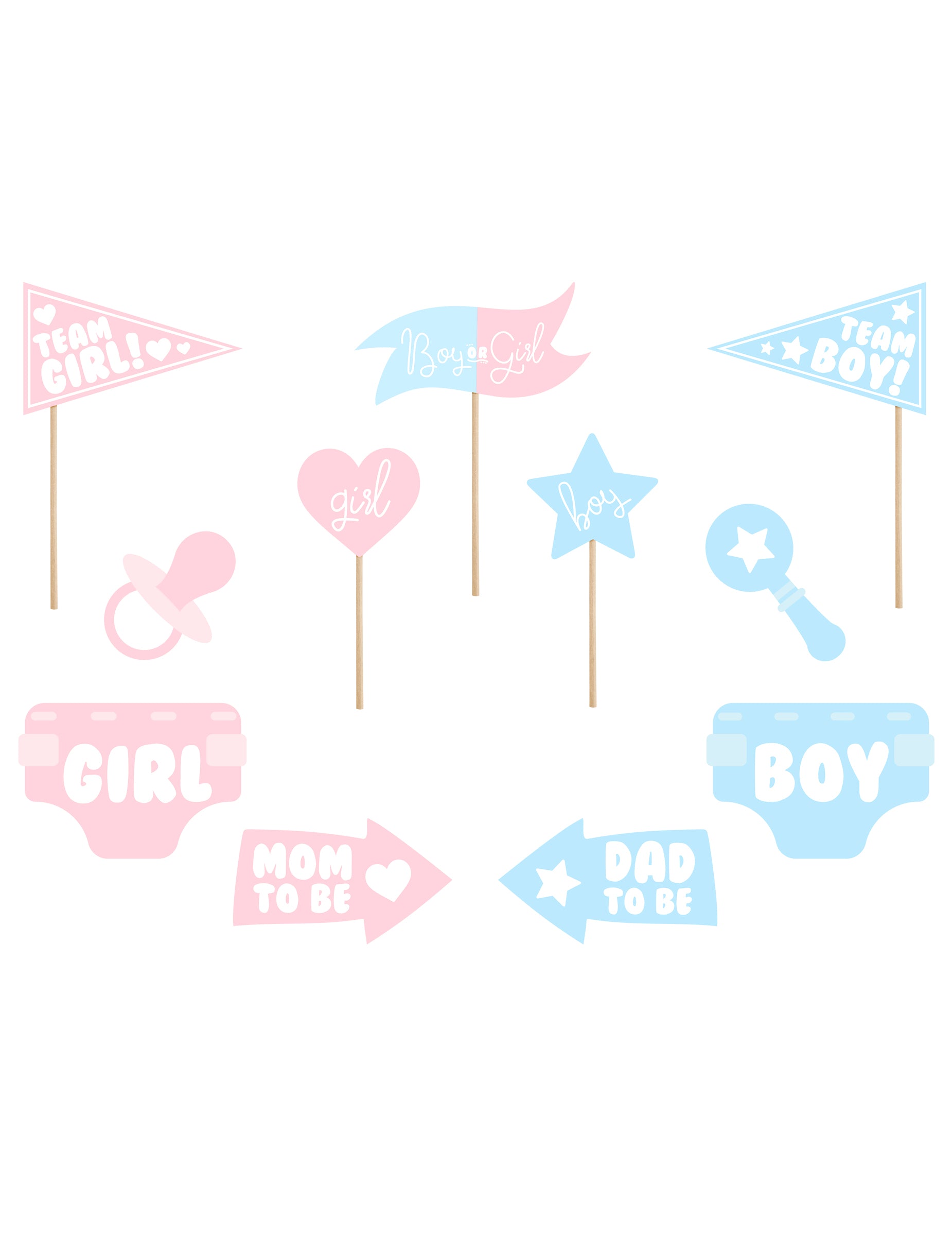 Pripravite se na zajemanje edinstvenih trenutkov s tem komplet za fotokabino vključno z 11 tematskimi dodatki za vašo razkritje spolaVsak kos je izdelan iz kakovostnega kartona, pritrjenega na leseno palico za lažje rokovanje.