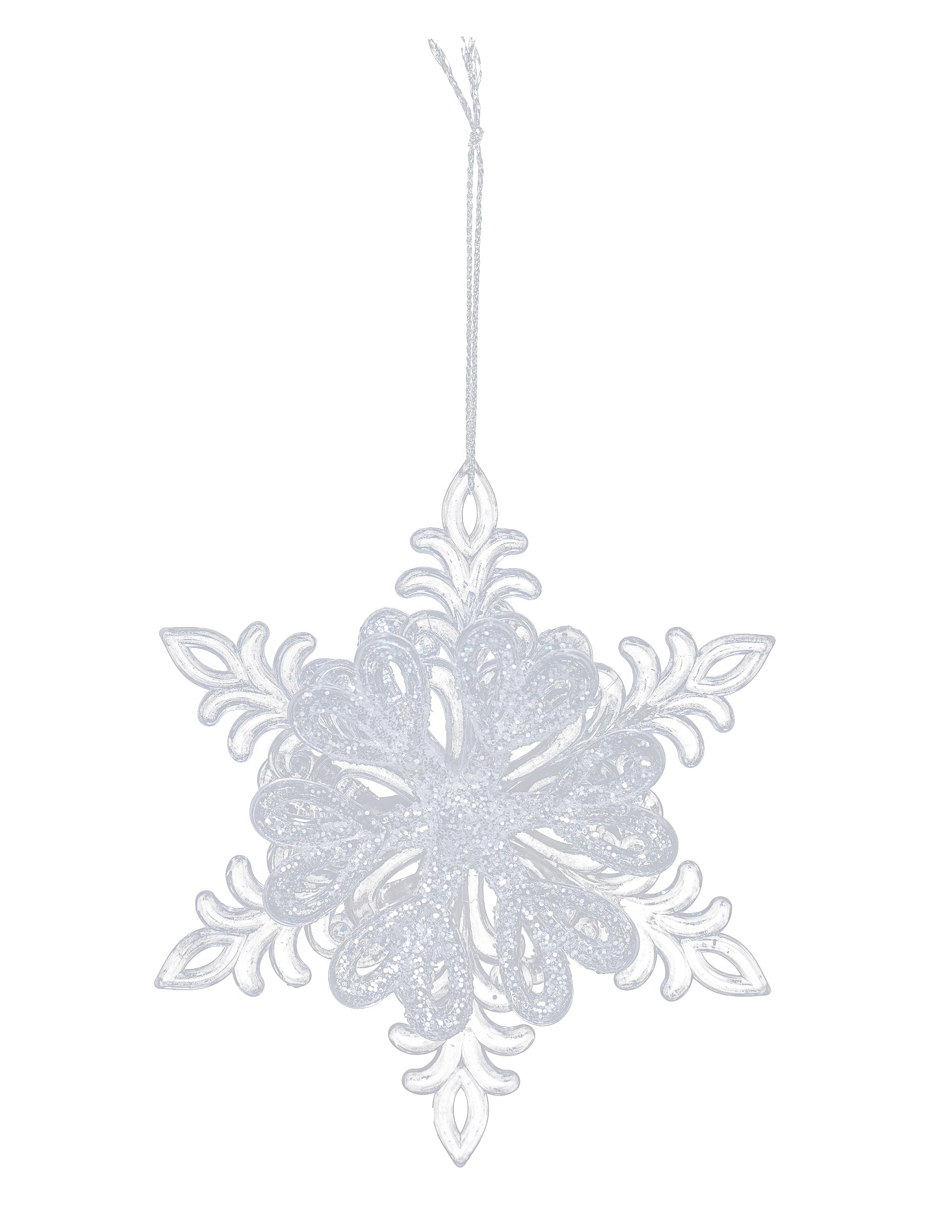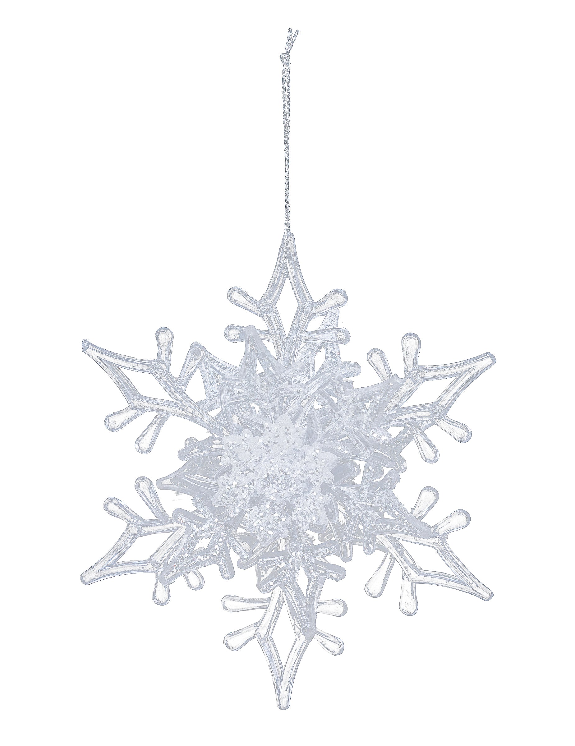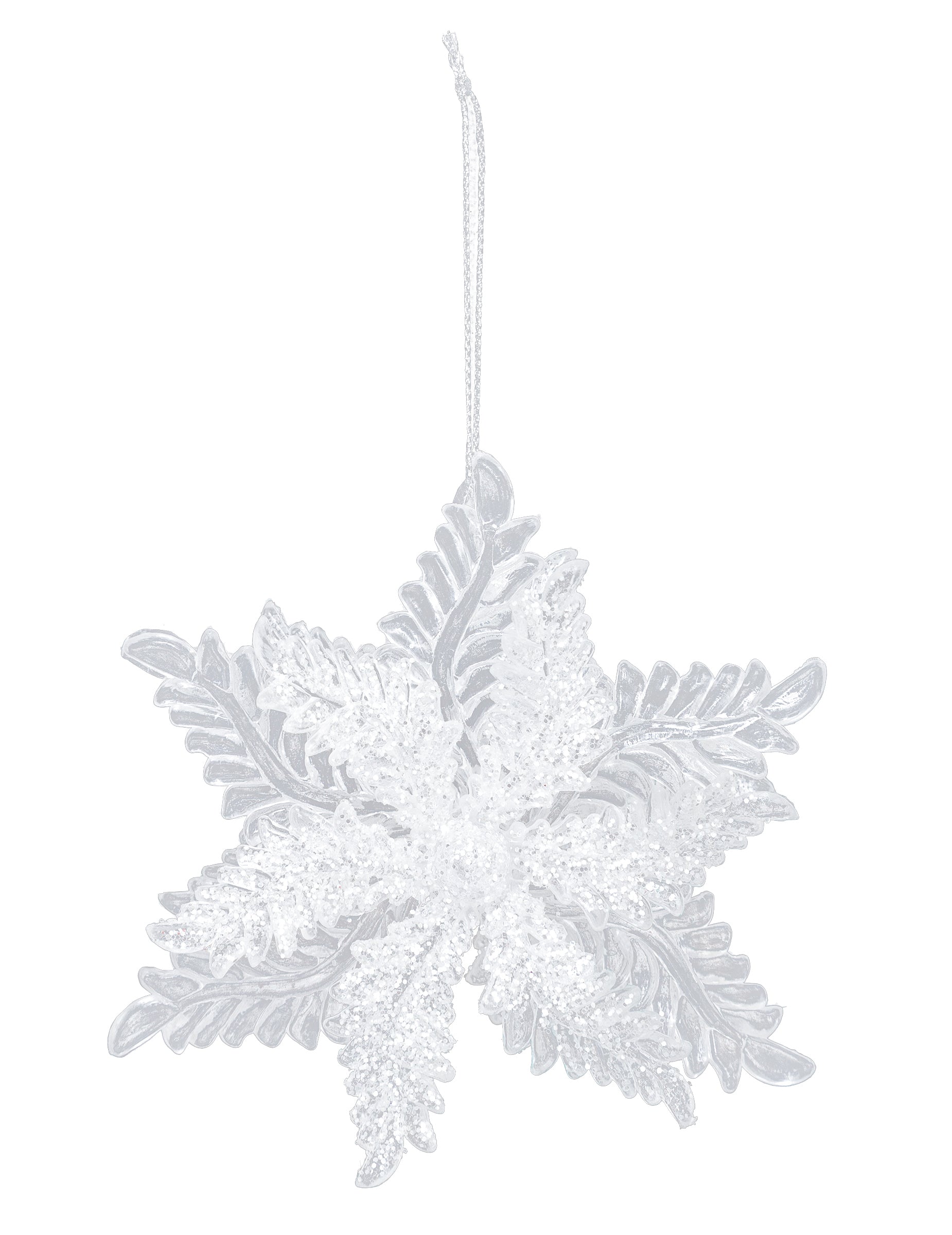 Ta viseča dekoracija meri premera približno 11 cm. Predstavlja snežinko z bleščicami. Snežinka ima lahko tri različne oblike, vzorec je naključen. Ta viseča gruda je idealna za okrasitev vašega božičnega drevesa v zimski temi!