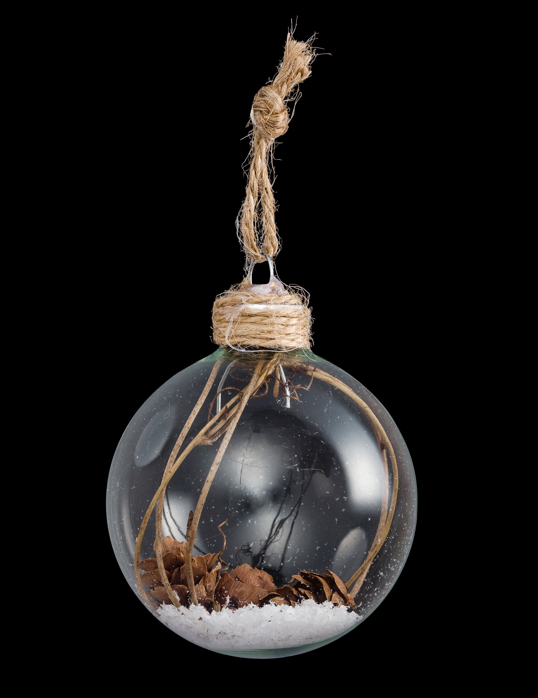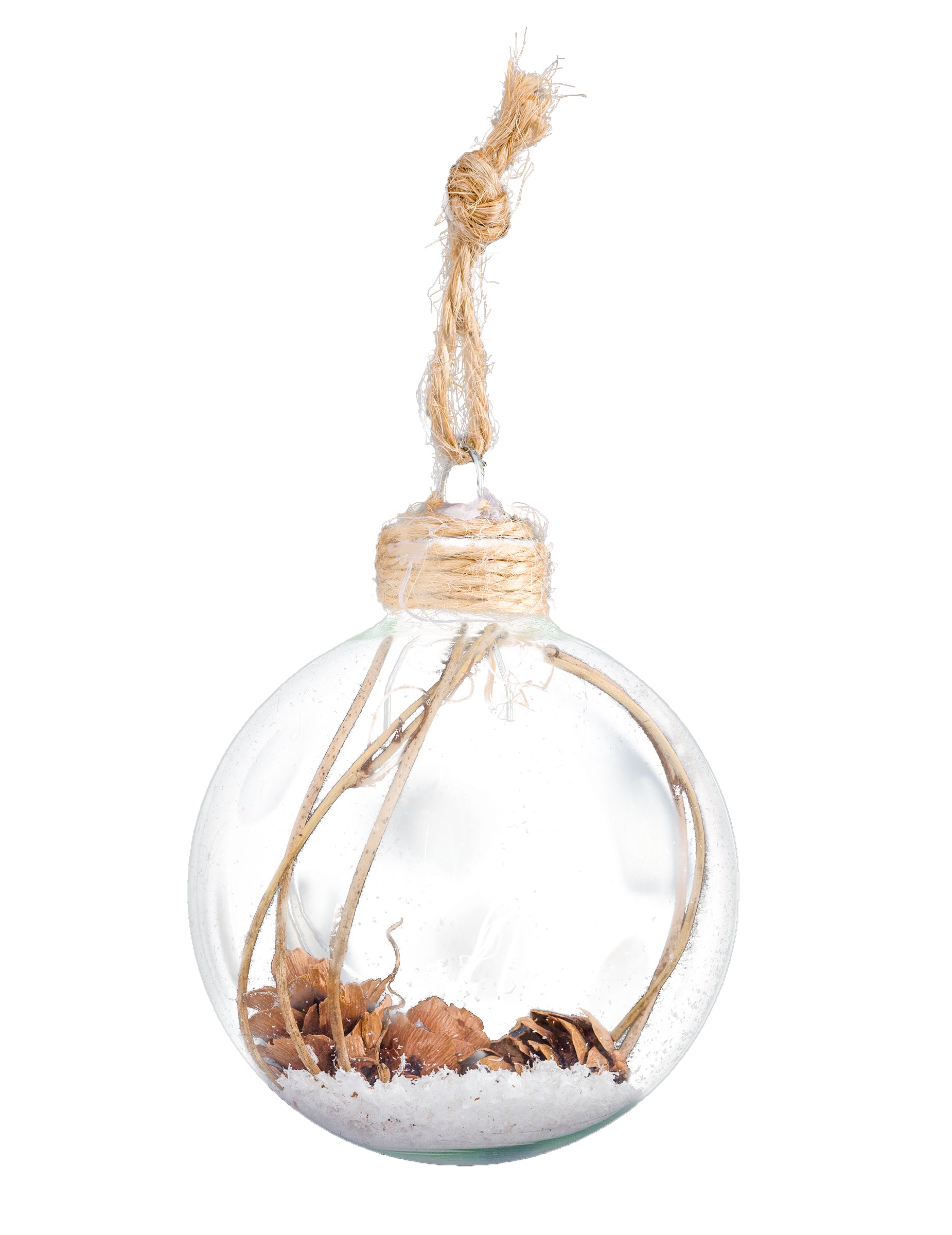 S premerom 6 cm, to žoga Ta prozorna steklena posoda vsebuje pristen zimski prizor. Vsebuje prave borove storže, koščke lesa in umetni sneg za poetični učinek. Zahvaljujoč vrvi, ki jo pritrdite, ta Božična krogla doda rustikalen in organski pridih vašemu jelkaMed prazniki se odločite za toplo in prijazno vzdušje.