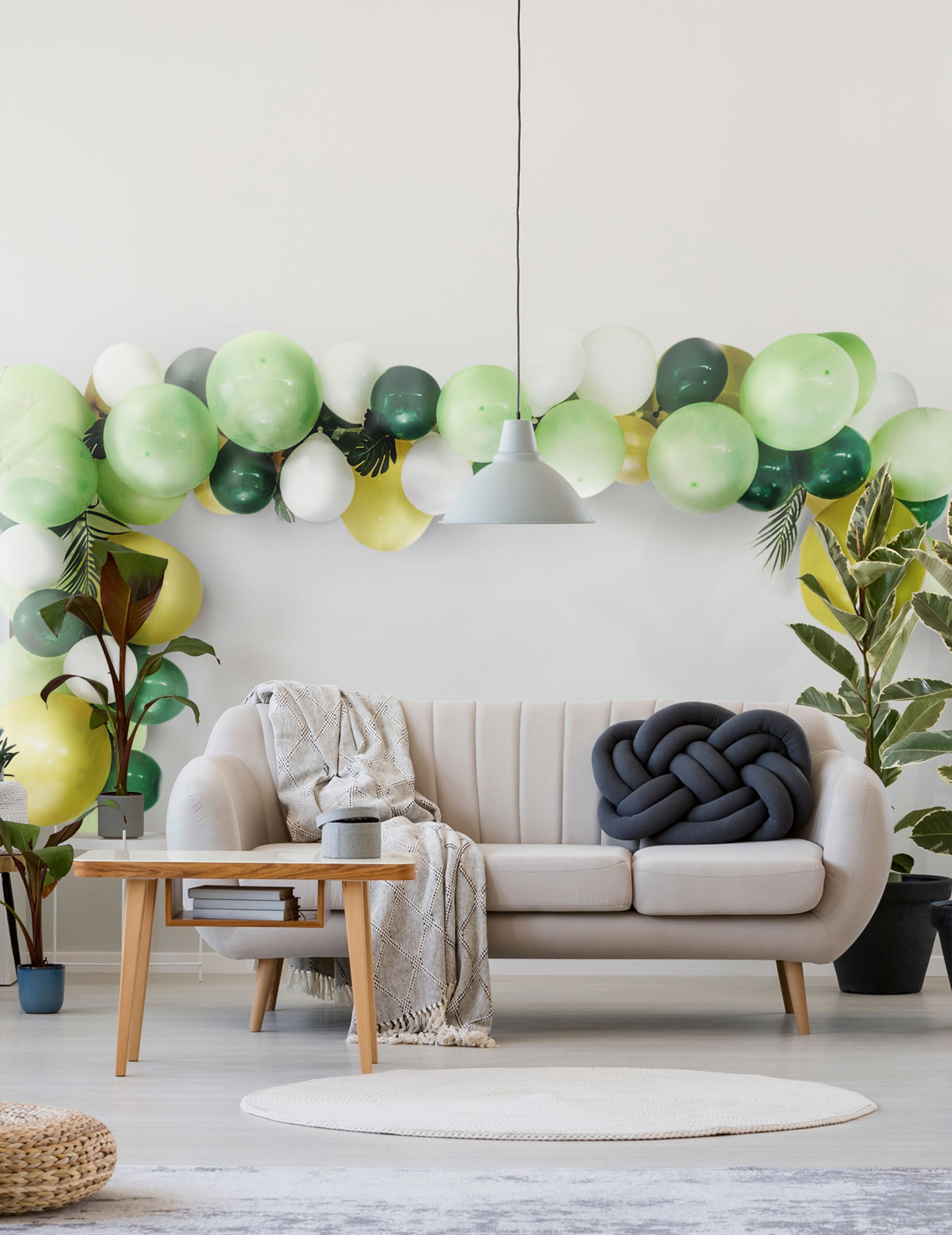 Ta komplet vključuje: - 30 25 cm zeleni baloni iz lateksa - 20 balonov lateks zeleni sapin 13 cm - 10 13 cm beli baloni iz lateksa - 8 13 cm zlati baloni za latek Nalepke - 5 m pritrdilnega traku Ti izdelki v tropskih barvah lahko obogatijo dekoracijo vaše sobe na temo džungle. Glonflez in sestavite balone, da tvorijo ark.