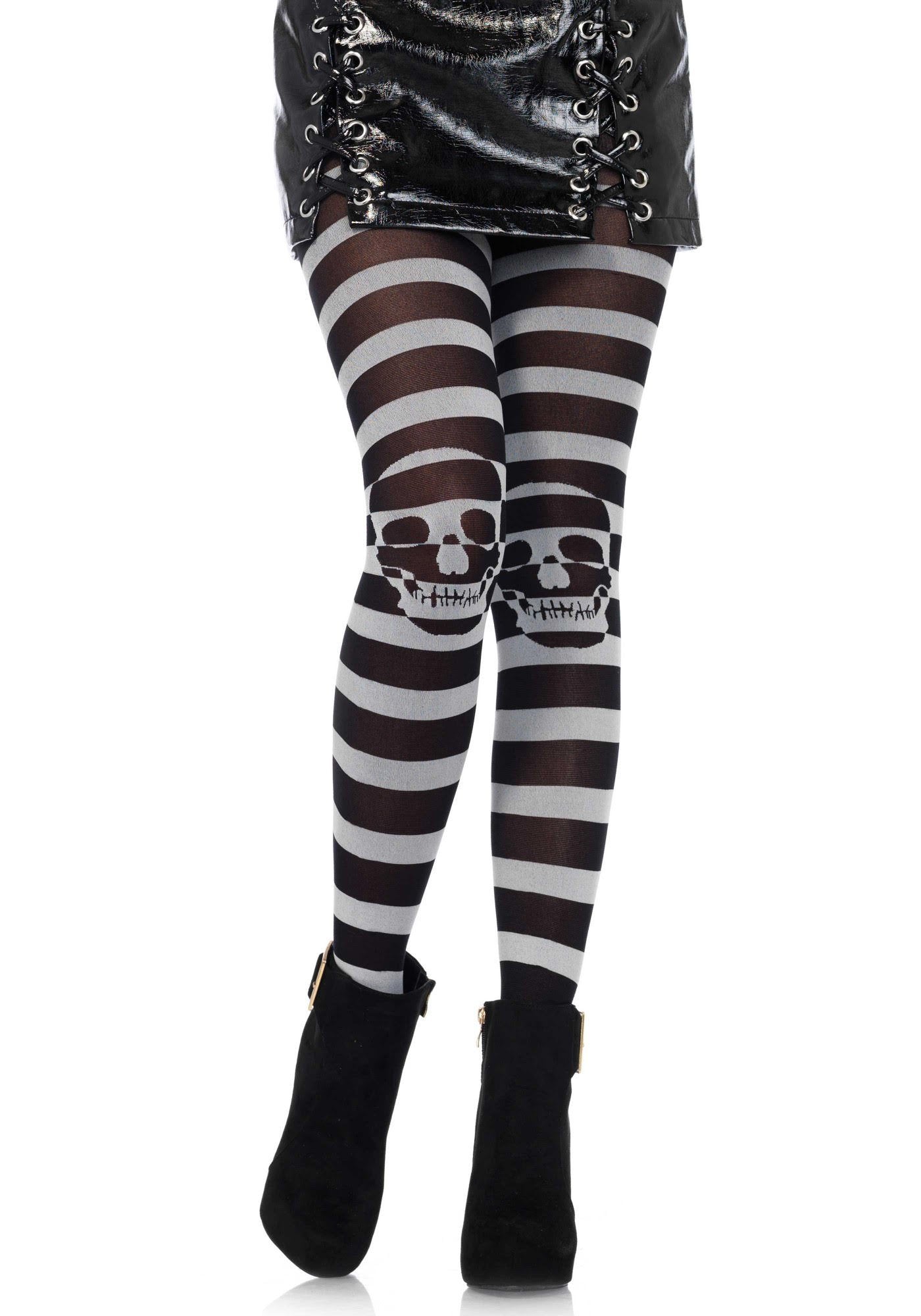Te ženske pajkice imajo črno-bele črte in potisk lobanje na kolenih. So popolne za dopolnitev vašega gusarske obleke za karneval.