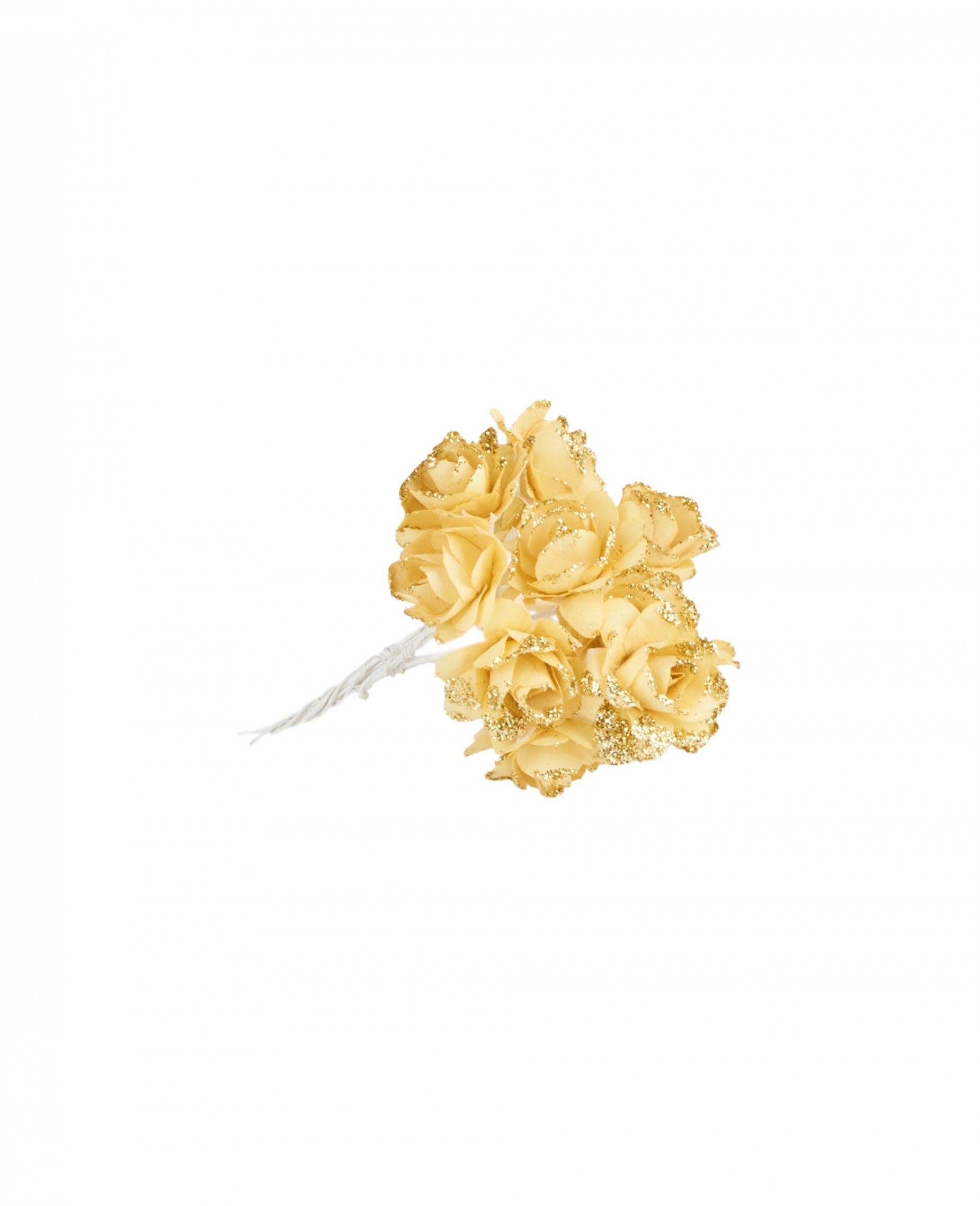 12 zlatih bleščečih papirnatih cvetov 9 cm z gibljivimi stebli