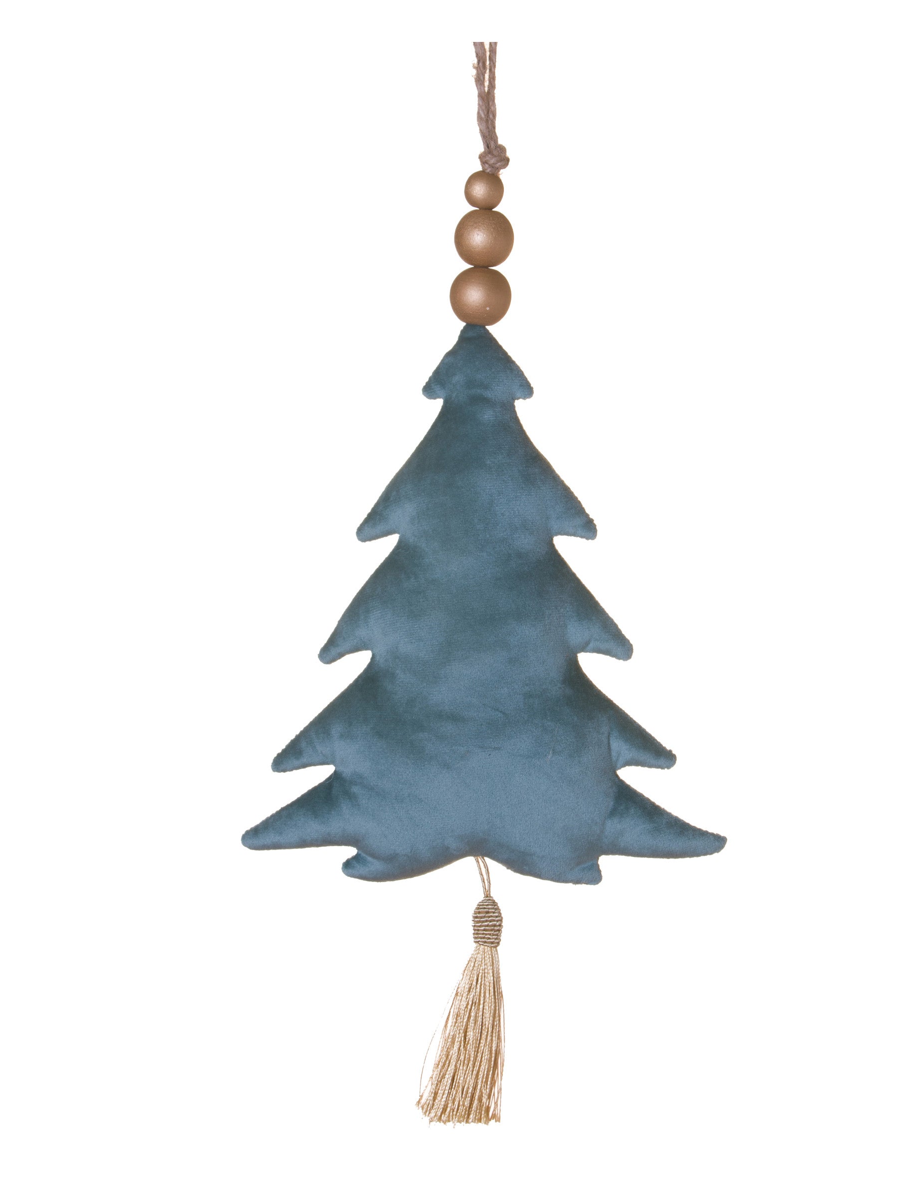 S tem dodate svoji notranjosti pridih elegance vzmetenje izdelano iz temno modrega žameta. Ta dekoracija v obliki jelka Okrašen je z nežnimi biseri in resico slonokoščene barve. V višino meri 22 cm. cm, Ta dodatek je idealen za izboljšanje vašega polarno božično drevo med prazničnim časom.