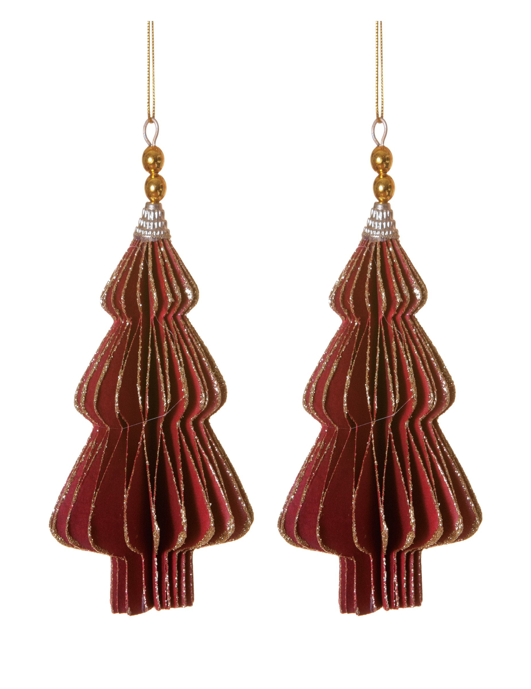 Ti papirnati okraski so skrbno izdelani in imajo obliko jelka rdeča, katere obrise elegantno poudarja zlata obroba.
