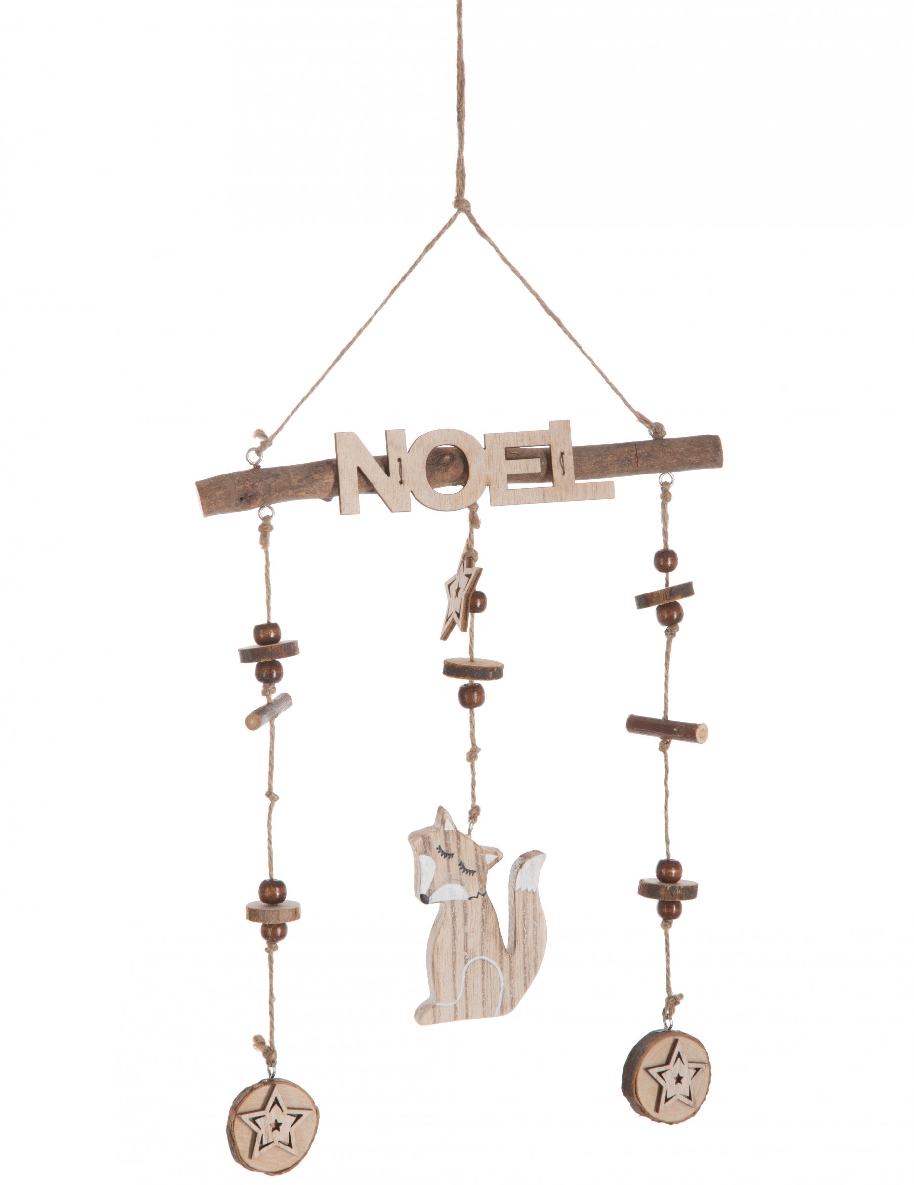 Ta lesena viseča dekoracija dolžine 45 cm je oblikovana kot naravni in eleganten mobil. Sestavljena je iz nosilca z napisom "Božič", na katerega so pritrjene tri vrvice z okrasnimi perlami, zvezdicami in majhnim gozdnim lisičkom. Za ustvarjanje toplega in pristnega vzdušja med božičnimi prazniki okrasite svoj prostor s to edinstveno visečo dekoracijo.
