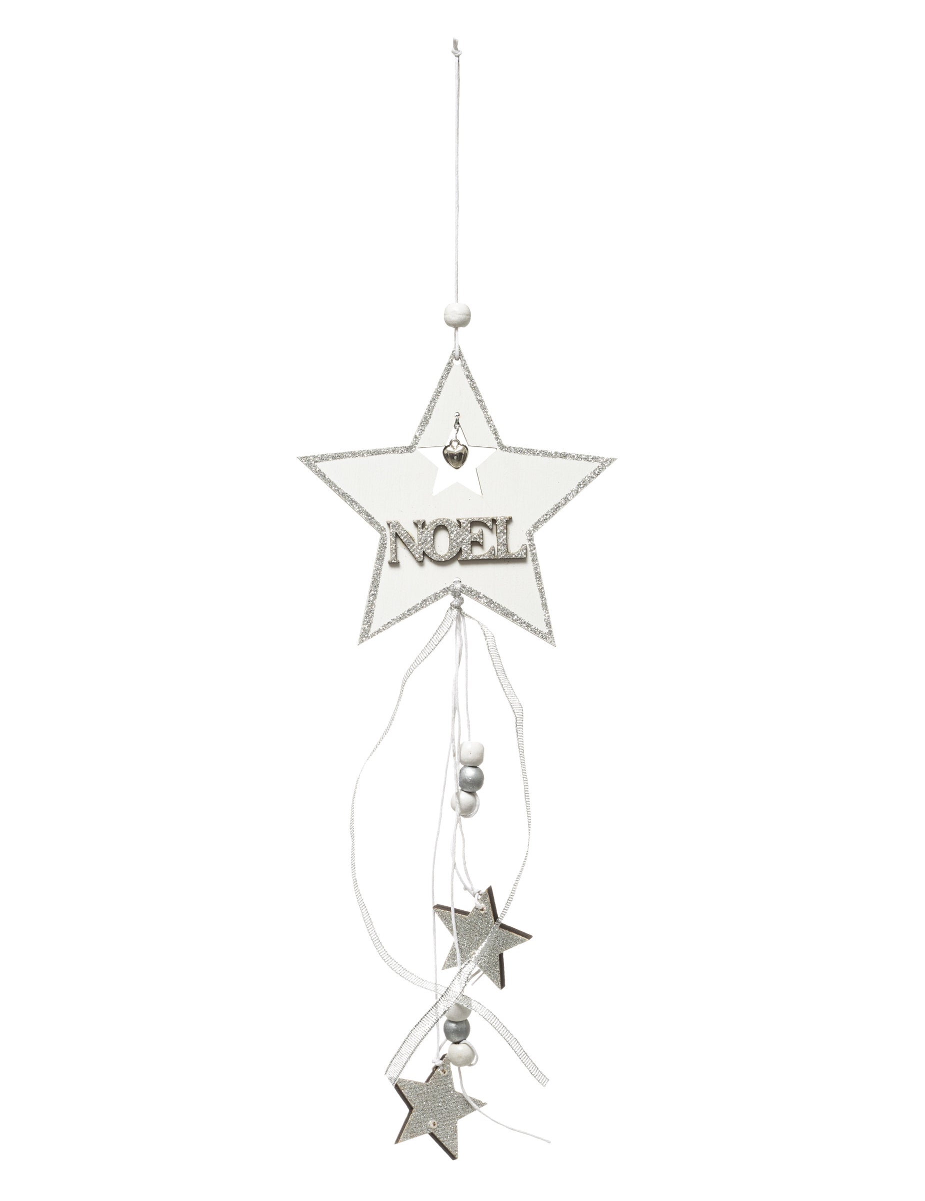Z višino 35 cm, to vzmetenje odlikuje ga velika zvezda osrednji prikaz sporočila BožičSrebrni elementi v obliki zvezde so nežno pritrjeni na trakove za zračen učinek. Obesite to zvezda da svojemu Božična dekoracija.