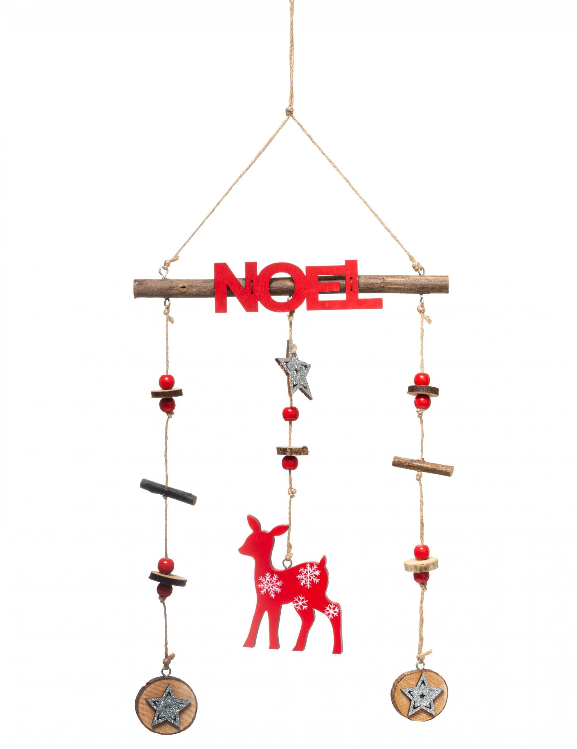 Dodajte svojim praznovanjem naraven pridih viseča dekoracija iz lesa, višina 38 cm cm. Ta okrasek, zasnovan kot originalni mobilni telefon, ima napis BOŽIČ Pobarvano rdeče. Lepa severni jeleni Barvita dekoracija je opremljena z več vrvicami, okrašenimi z biseri, lesenimi elementi in majhnimi zvezdicami. Idealno za popestritev vašega vzdušja. Božič, To viseči severni jeleni Njegov pristen slog bo očaral vaše goste.