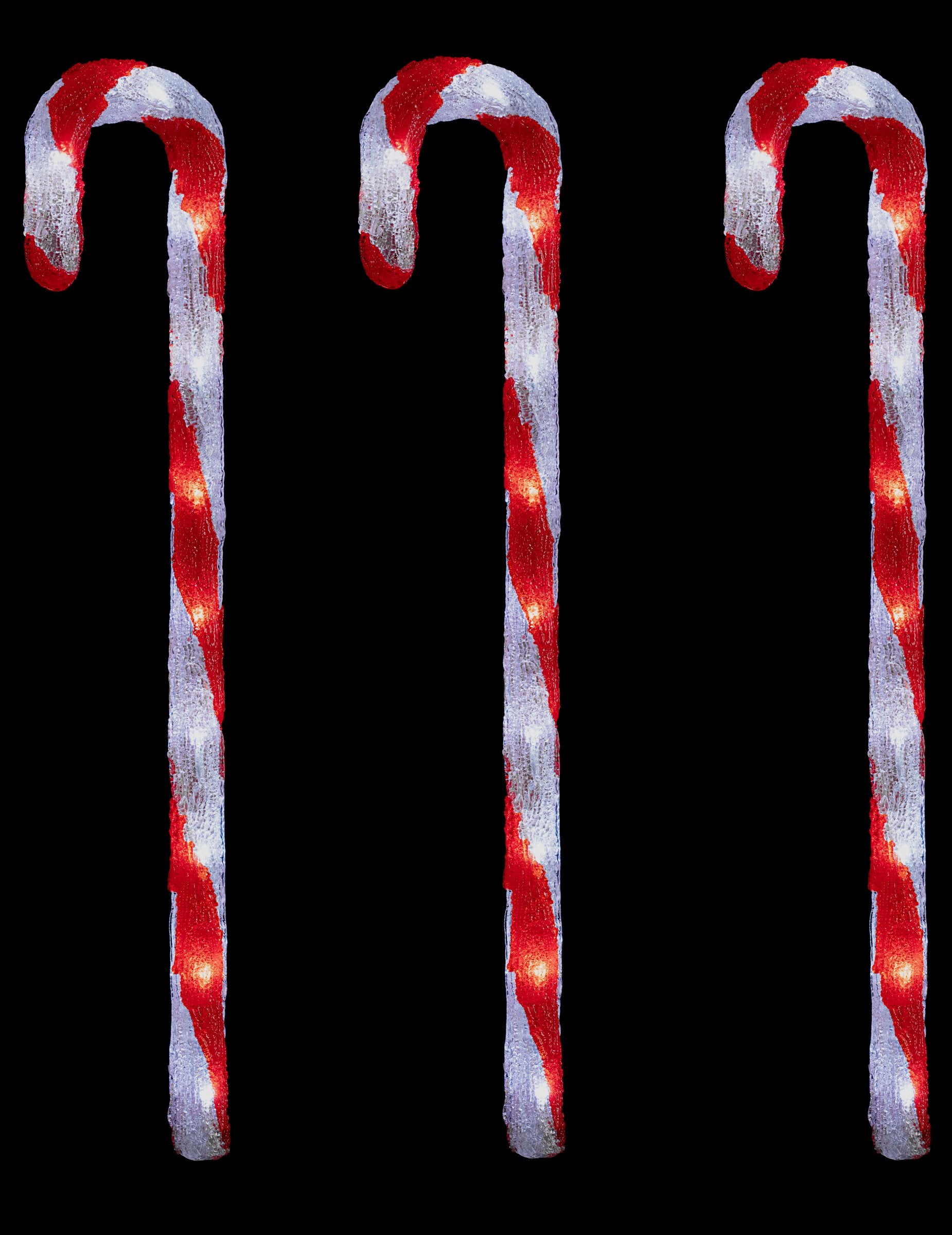 Ta komplet je sestavljen iz 3 svetlobnih okraskov z višino približno 70 cm. Imajo obliko sladkornega trsa črtaste bele in rdeče. Imajo 30 LED, ki sijejo s hladno belo svetlobo z 8 lahkimi igrami! Zahvaljujoč funkciji časovnika lahko okraski ostanejo do 6 ur. Preprosto jih povežite s sektorjem s priloženim napajalnikom in 5 -metrskim prozornim kablom. Osvetlite svoje tradicionalne božične okraske s temi svetlečimi sladkornimi palici! Ker jih lahko uporabljate zunaj, jih lahko med počitnicami enostavno namestite na vaš vrt ali po vašem hodniku.