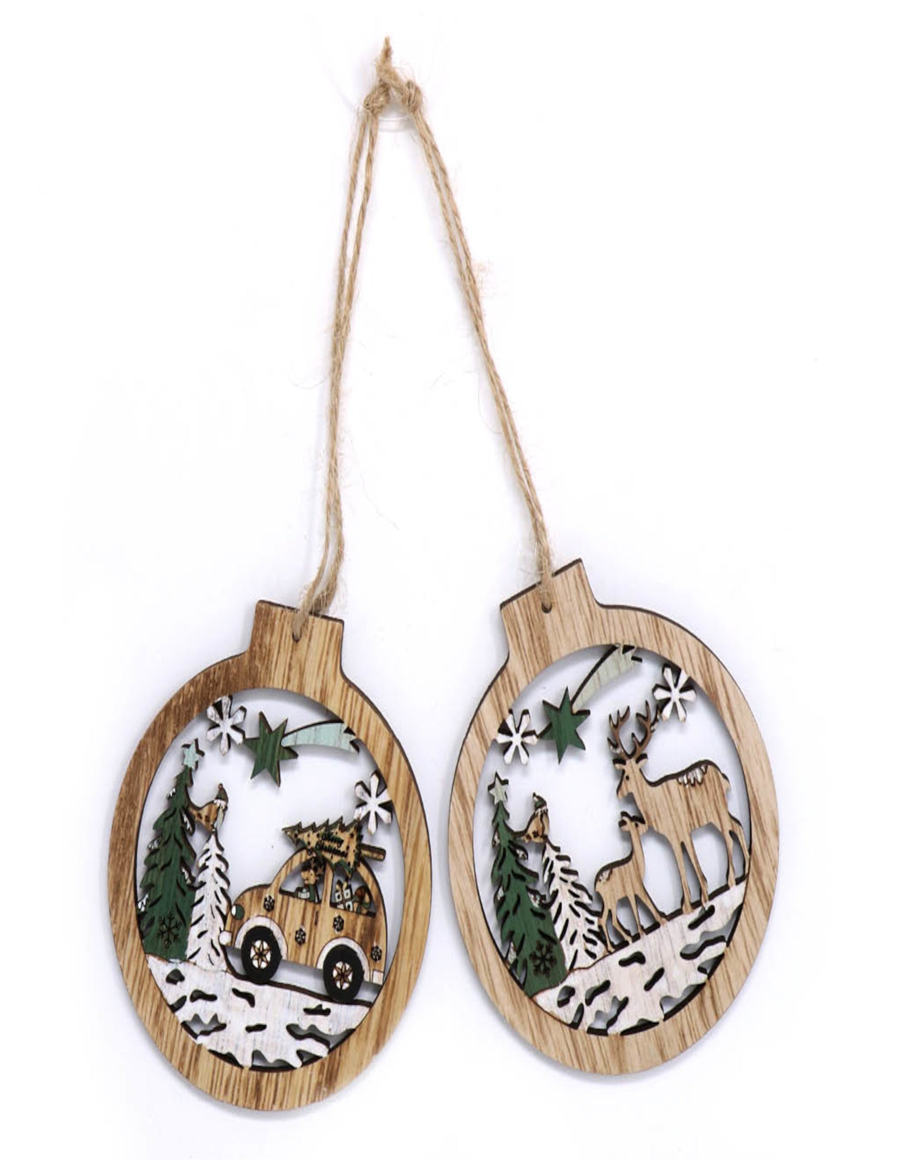 Dodajte pridih narave svojim okraskom za zabavo s tem kompletom dveh kosov leseni viseči okraski merjenje 10 cm.