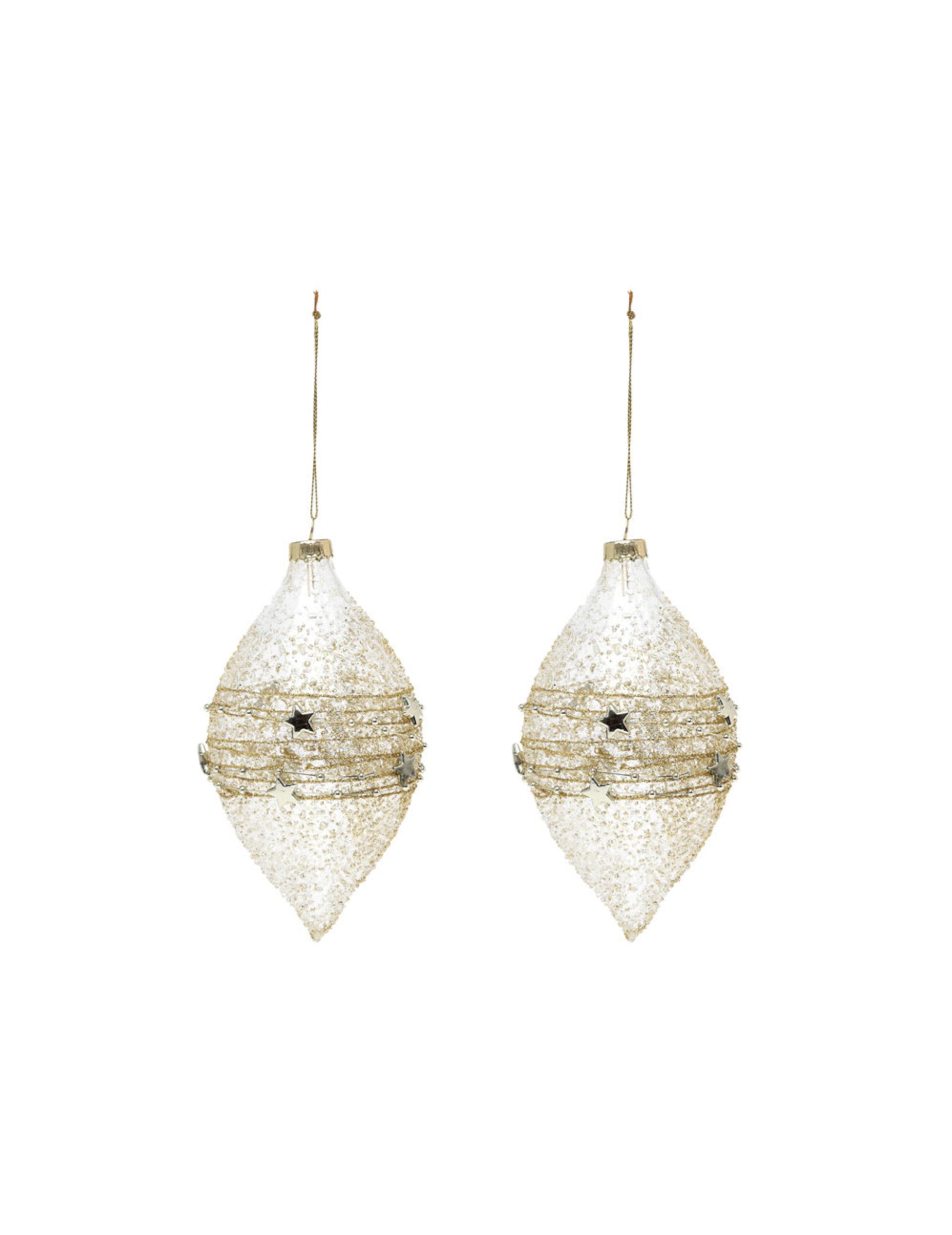 2 stekleni kapljičasti zlati okraski 15 cm