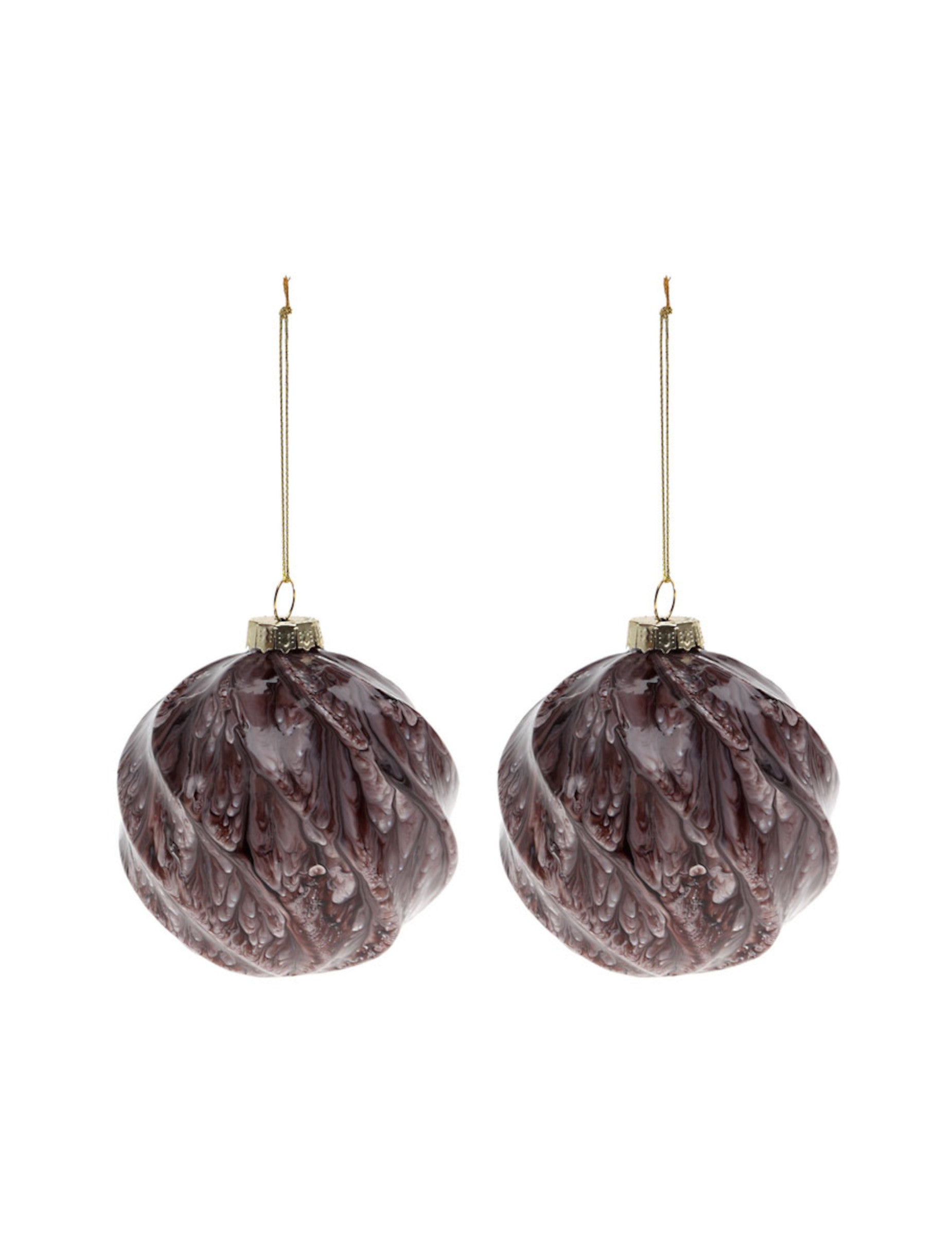 Okrasite svoj dom s tem kompletom dveh Božične kroglice Izdelano iz stekla. S premerom 8 cm, Ti okraski imajo rjav odtenek z marmoriranim učinkom, ki spominja na naravni videz lubja. marmorirane kroglice so idealni za vdahnitev lesnega in pristnega občutka v vaš Božično drevo Letos.