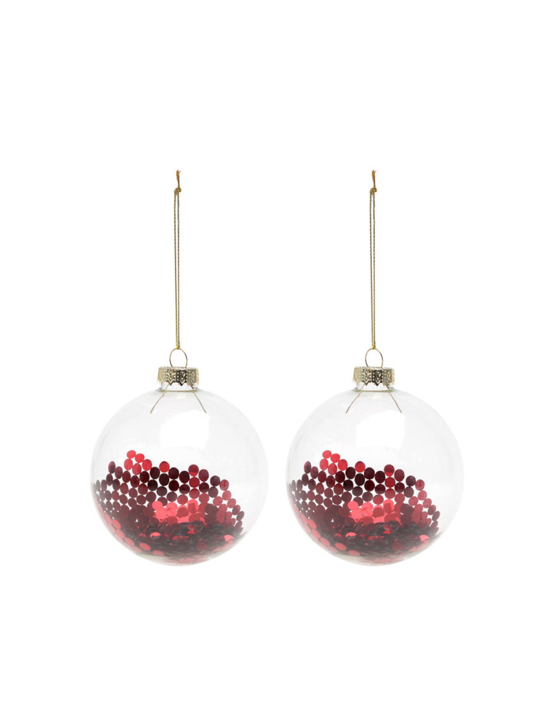 Ta komplet vključuje dva kroglice Božični okraski iz prosojnega stekla. Vsak kos ima premer 8 cm in vsebuje lepe rdeče bleščice za bleščeč učinek. bleščeče kroglice bo vašemu vnesel sijaj in pridih elegance Božično drevo med prazničnim časom.