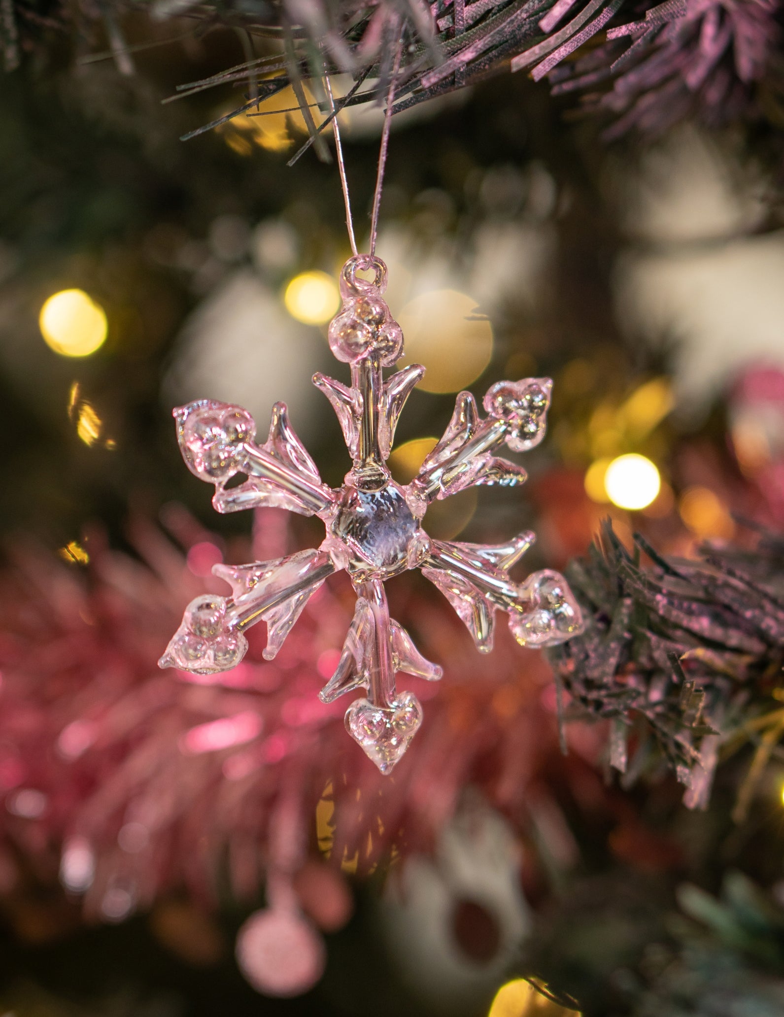 Sublimez votre sapin de Noël avec cet ensemble de 3 flocons en verre à suspendre. Chaque pièce de 7 cm de diamètre capte la lumière grâce à sa finition transparente aux reflets iridescents. Ces flocons apportent une atmosphère polaire et magique à votre décoration de fêtes de fin d'année.