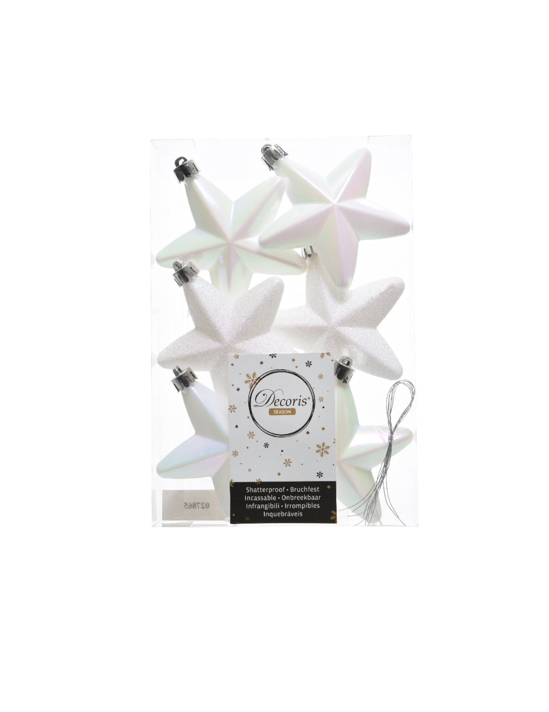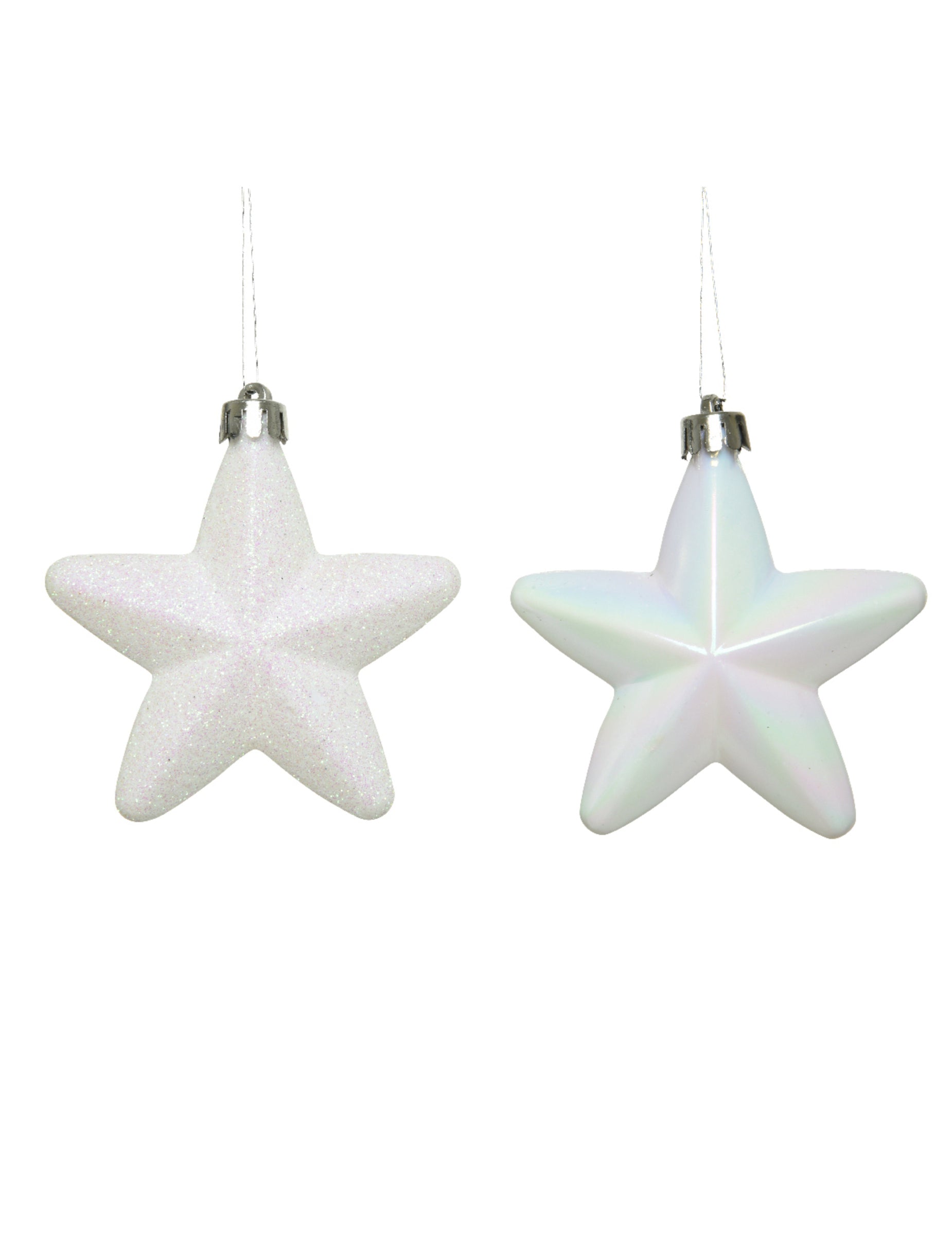 6 belih zvezdastih okraskov za božično drevo 7,5 cm bleščeče in mavrične
