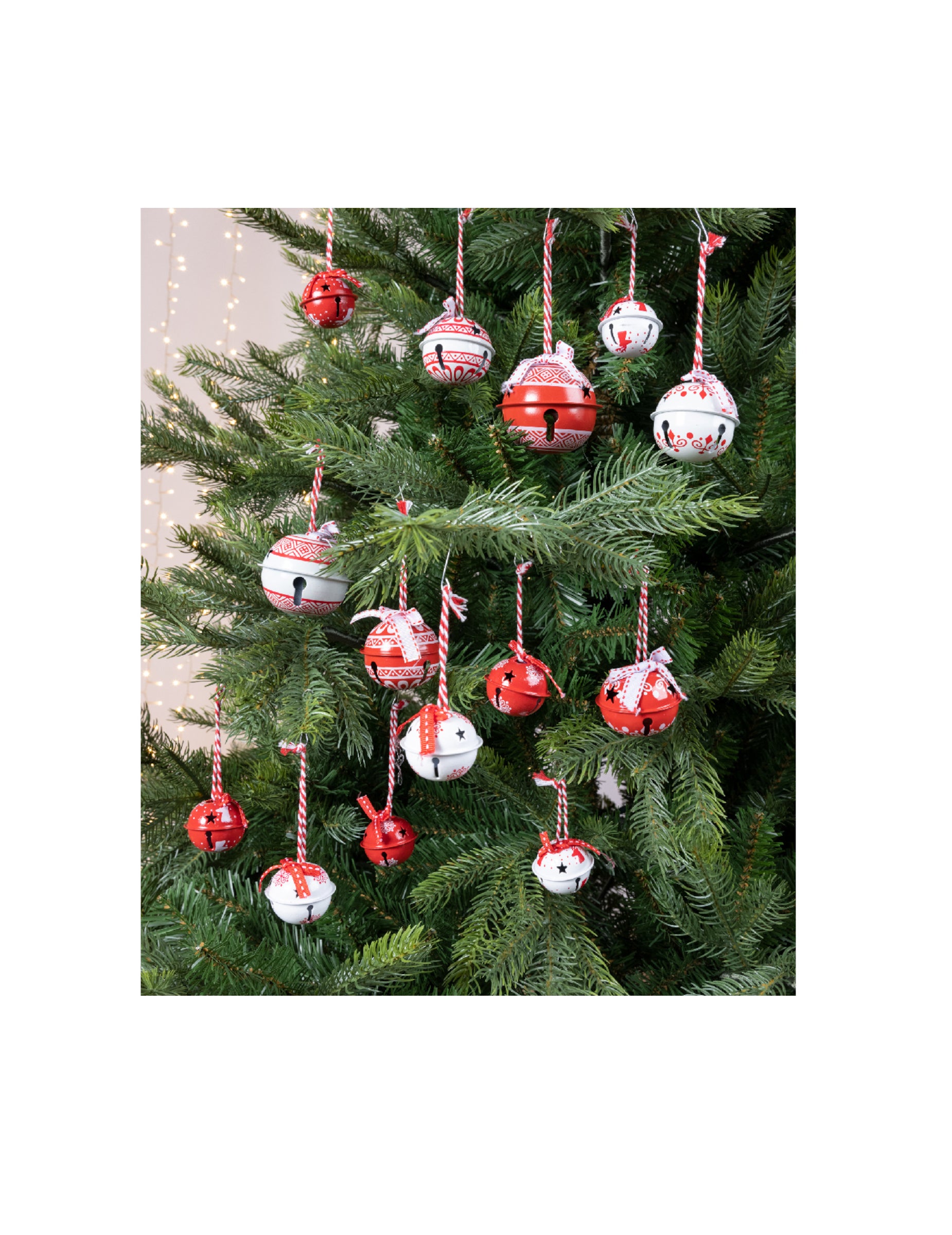 14 okraskov za božično drevo z belimi in rdečimi zvončki (velikosti od 4 do 6) cm z vozli