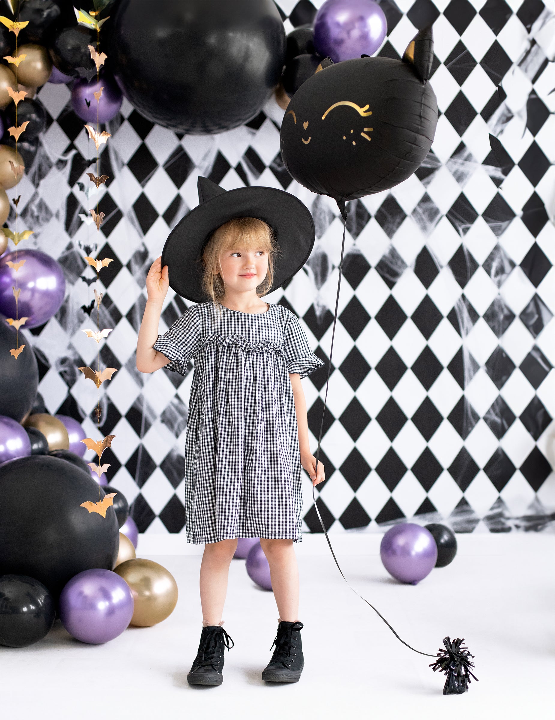 Sublimez votre fête avec ce ballon en aluminium aux dimensions de 48 x 36 cm. Il arbore une jolie tête de chat noir avec des détails dorés au niveau des yeux. Compatible avec un gonflage à l'air ou à l'hélium, ce ballon chat s'intégrera à merveille dans votre ambiance d'Halloween ou pour un anniversaire thématique.