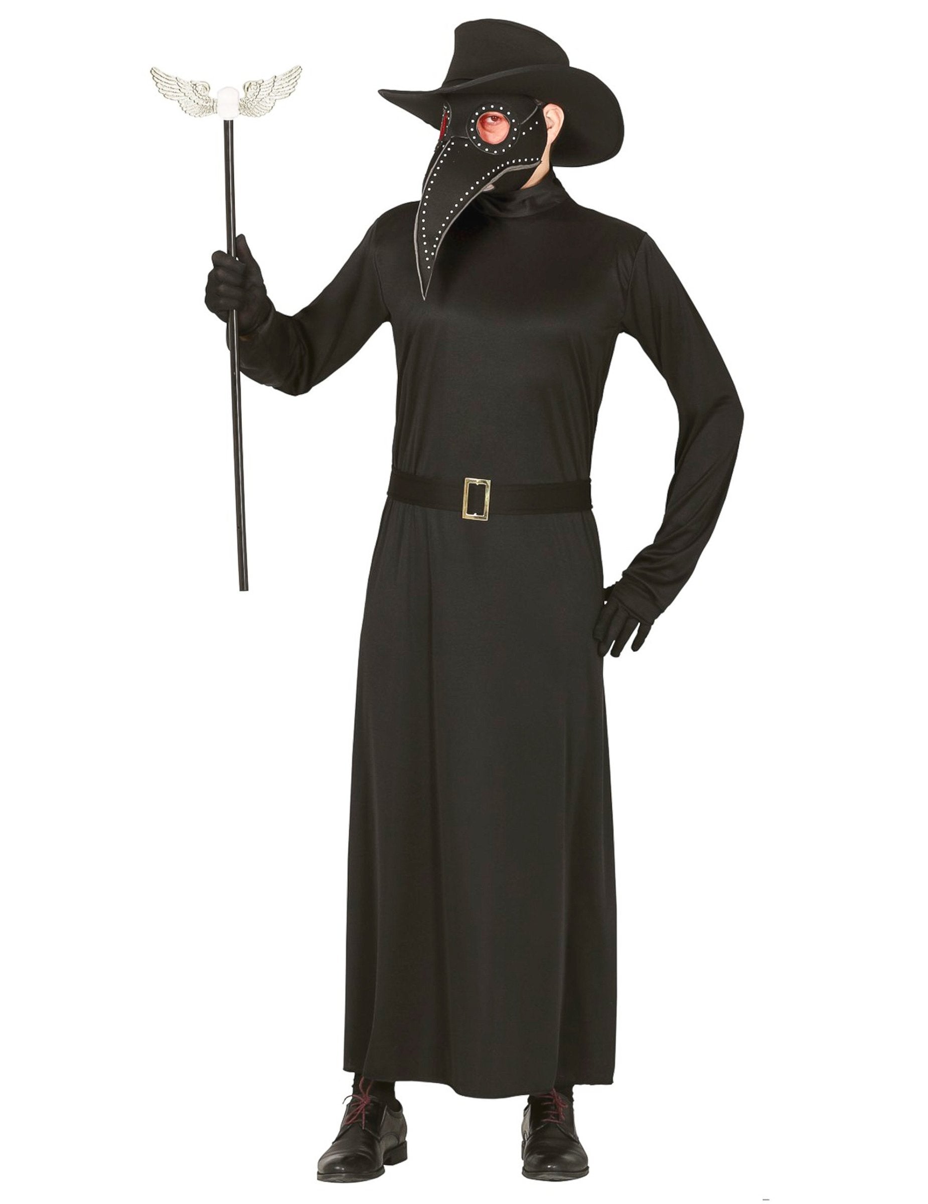 Ta kostum za kugo je za odrasle. Vključuje klobuk, masko, tuniko in pas. Klasični preoblečen klobuk je črn. Za polovično črno masko je značilna tudi njegova oblika na glavi vrane, z dolgim kljukam nosom in velikimi očmi, da bi lahko v vsej enostavnosti opazovali ljudi okoli vas! Dolga črna barvna tunika se ujema s klobukom in masko, ima dolge rokave in čez njo, dodali boste črni pas z zlato kvadratno povezavo. S tem kostumom si zamislite za večer za noč čarovnic ali enega za prikrit večer!