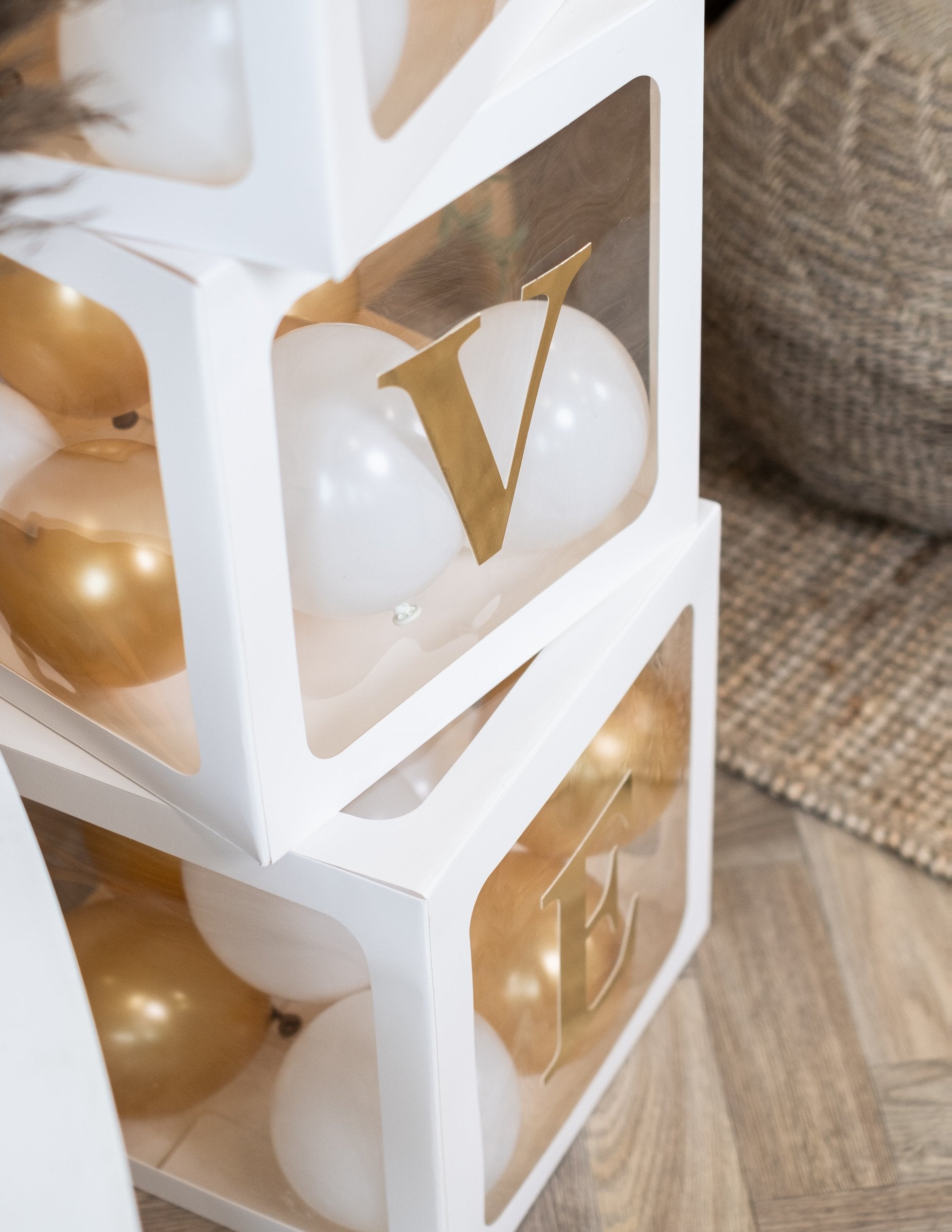Apportez une touche d'originalité à vos événements avec ce lot de 4 cubes pour ballons transparents de 30 cm. Chaque boîte peut être remplie d'une dizaine de petits ballons de 13 cm environ (non fournis) pour un rendu spectaculaire. Ces cubes sont parfaits pour être personnalisés à l'aide de stickers afin de former des prénoms ou des mots thématiques. Ils s'adaptent à toutes les célébrations : utilisez des ballons de couleurs pour un anniversaire, du blanc pour un mariage ou des nuances pastel pour une gender reveal party.