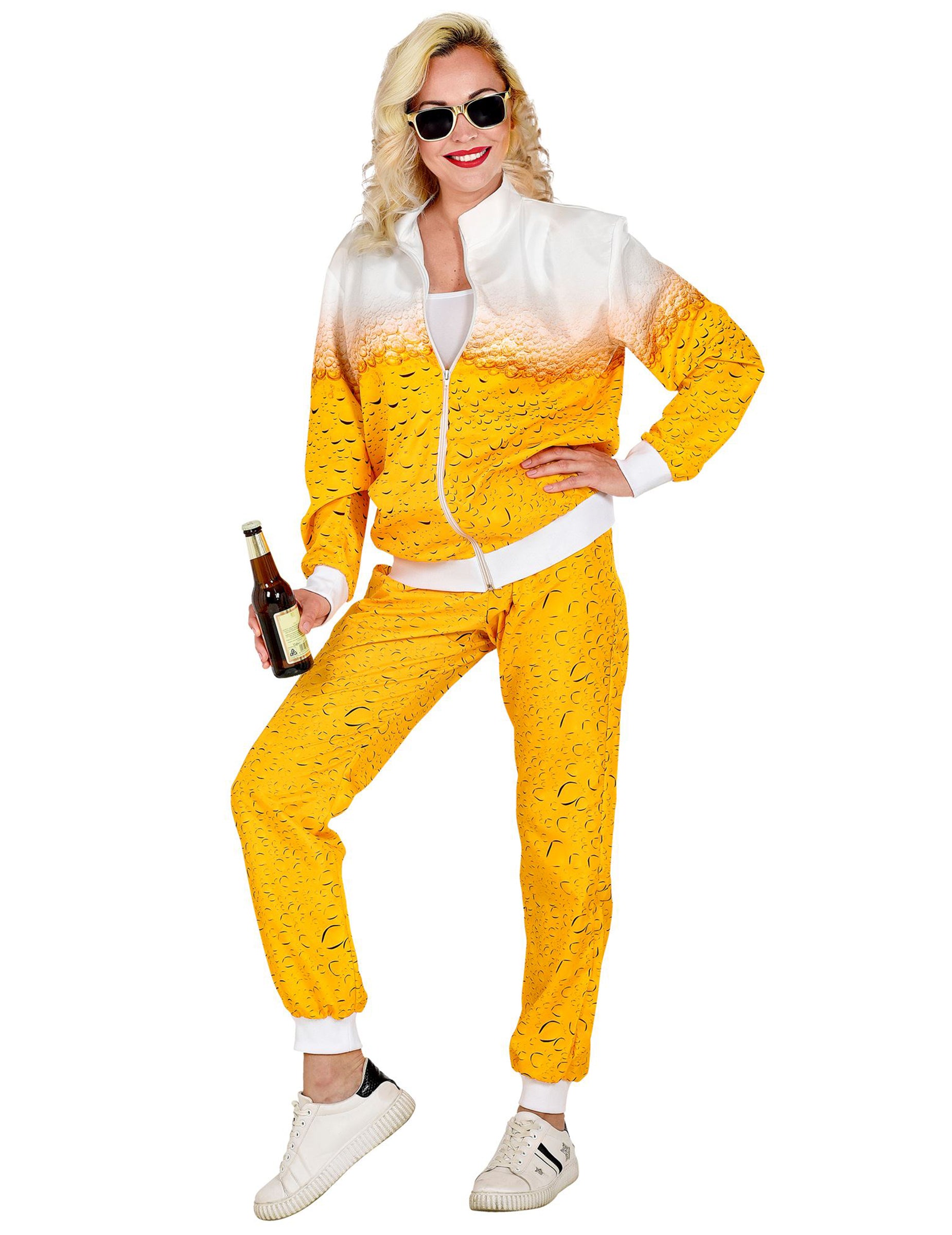 Ta kostum za pivske trenirke je namenjen odraslim. Sestavljen je iz suknjiča in hlač. Vrh celote je sledilna obleka z belo zadrgo na osrednjem delu. Za jakno je značilen gradient rumene in bele barve. Hlače, tudi iz sledilnih oblek, so rumene. Celoten kostum ima učinek "pivo", ki je neposredno natisnjen na vrhu in na dnu. Pojdite neopaženo med znamenitim festivalom piva ali za tematski večer!
