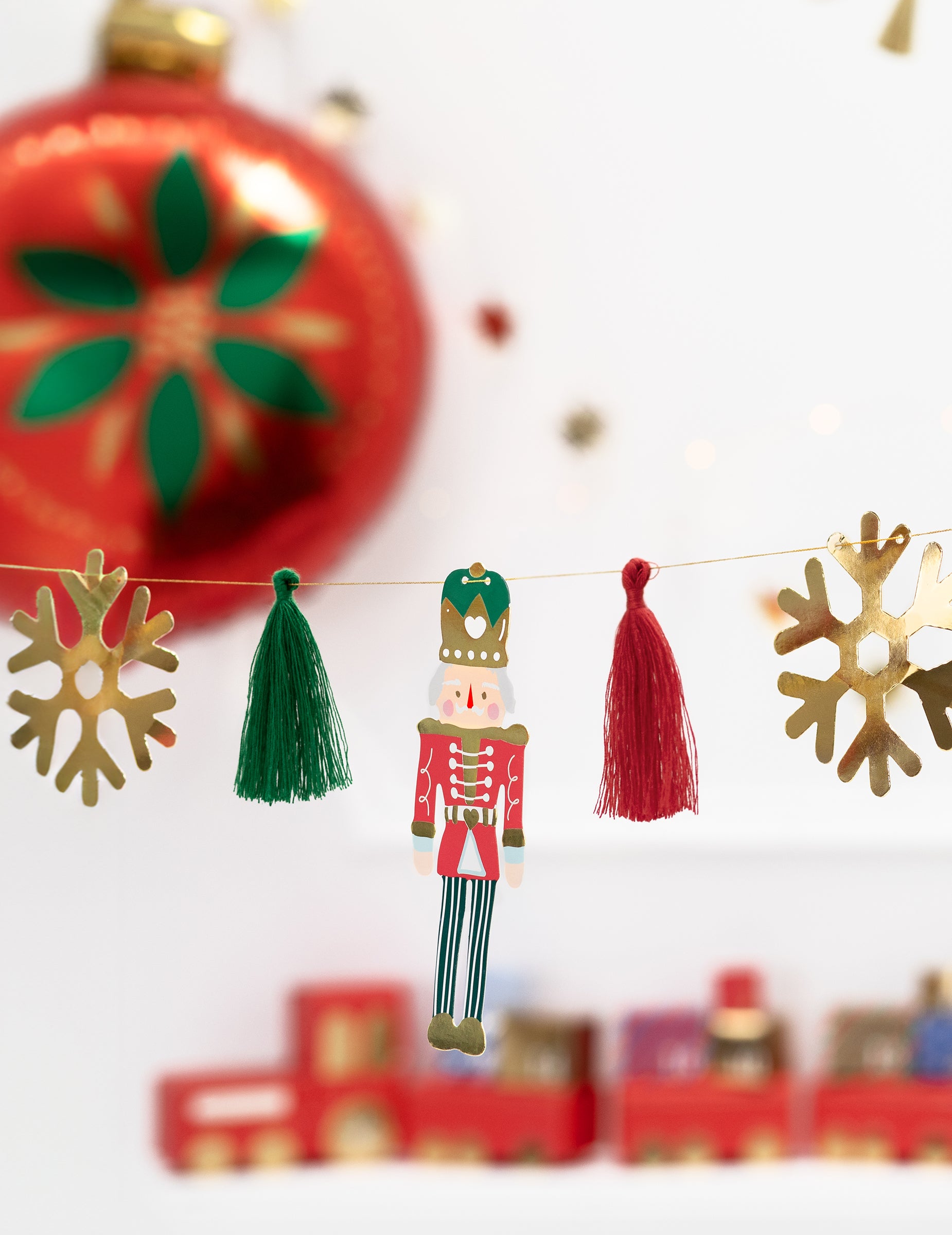 2-metrska božična papirnata girlanda z vzorci Hrestača in Balerine ter cofki