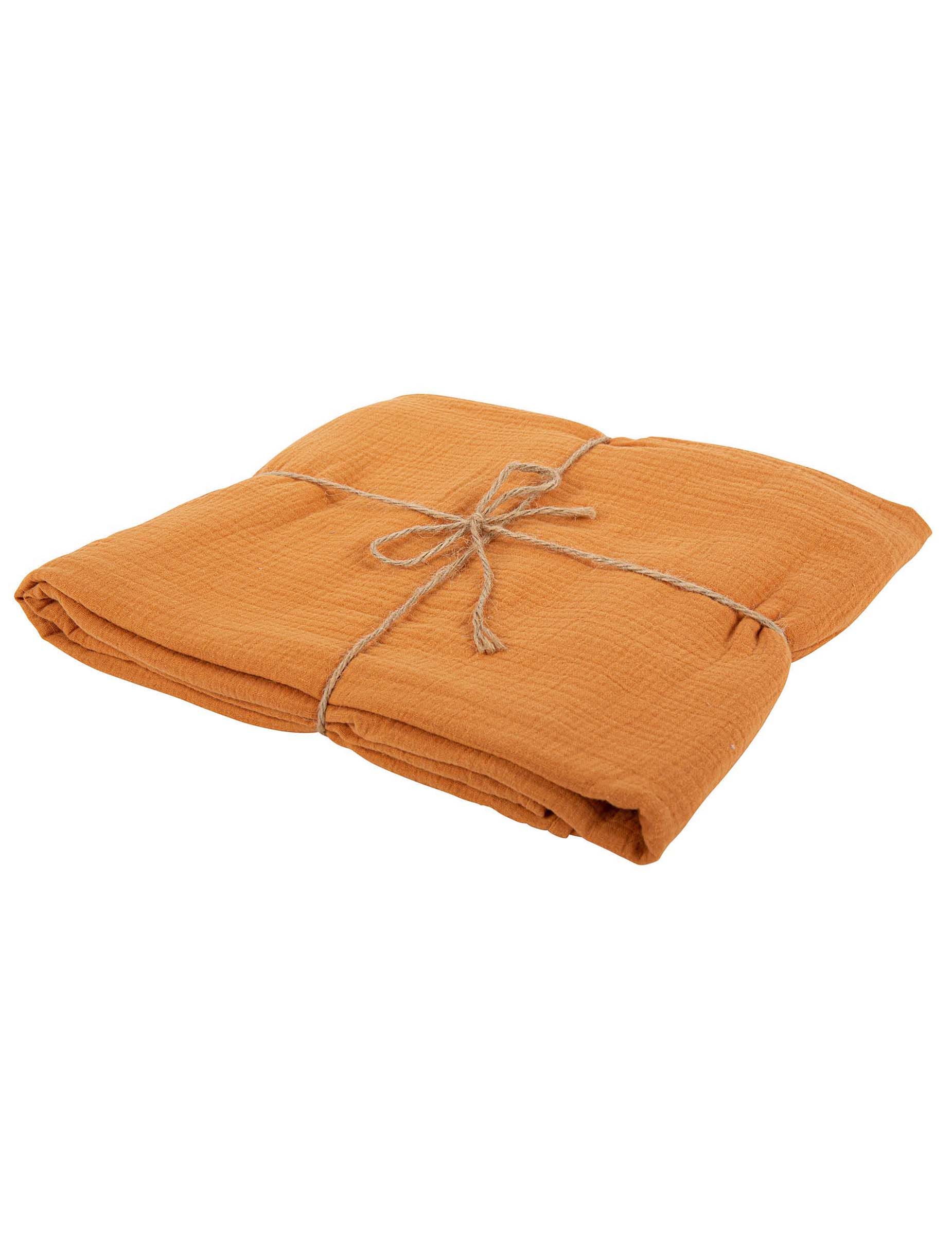 Popestrite svoje praznične mize s tem prt iz bombažne gaze z oker-oranžnimi odtenki. Ta model žgane zemlje meri 130 x 240 cm ponuja lahkoten in naraven zaključek.