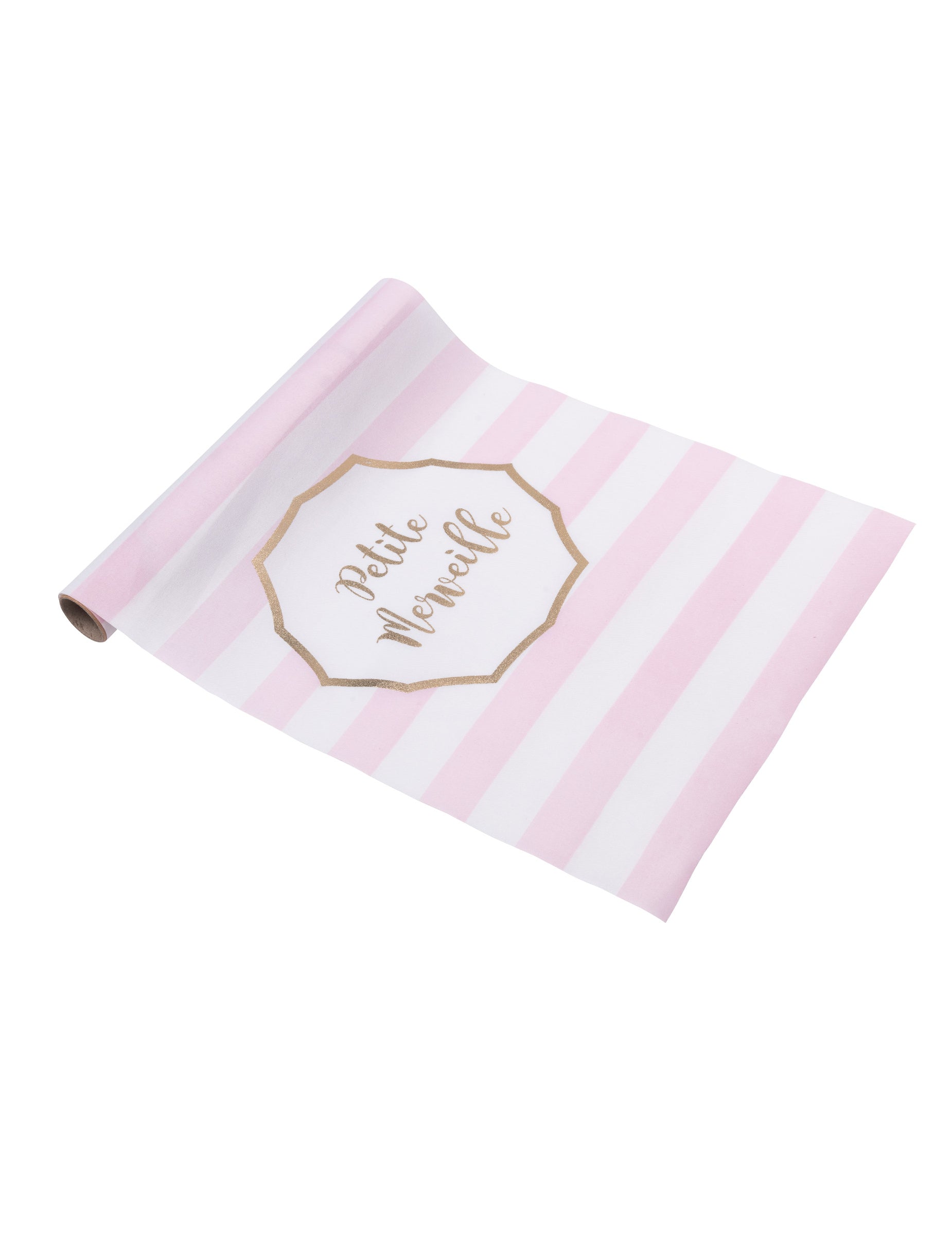 Okrasite svojo zabavo s tem tekač za mizo v tkanini 28 cm za 5 metrov. Ima eleganten roza in bel črtast vzorec, okrašen z besedilom "malo čudno" napisano z zlatimi črkami. Ta dodatek bo popoln za popestritev vaše dekoracije med otroška zabava, od krst ali praznovati 1. obletnica.