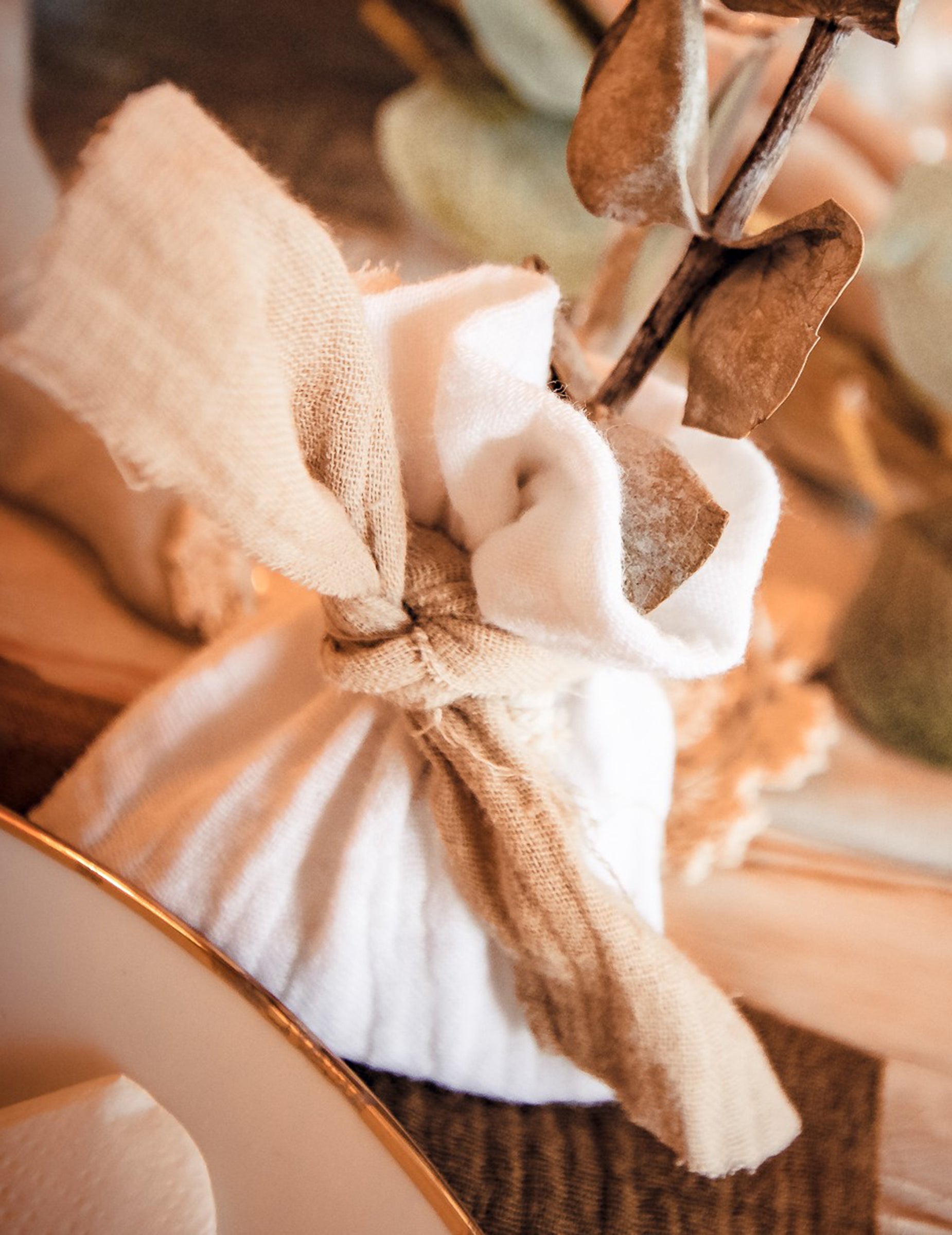 4 pochons en gaze de coton blanc 8 x 10 cm avec ruban