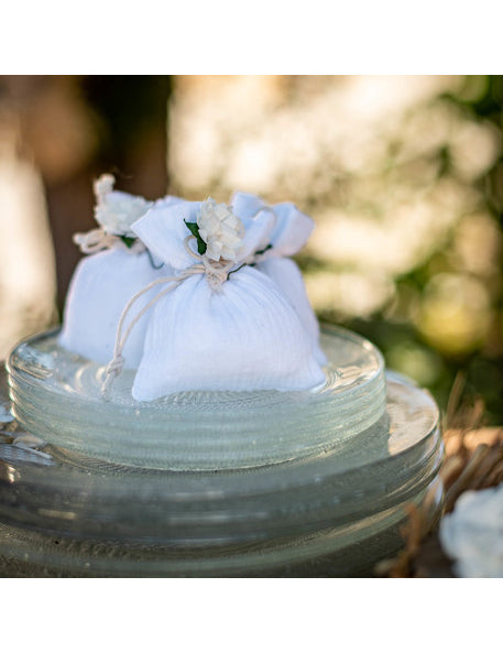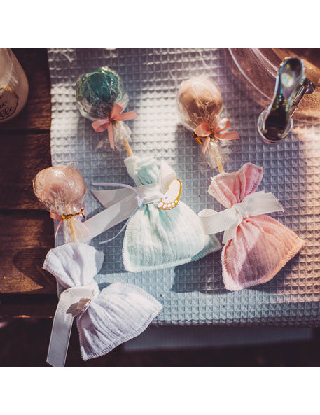 Ce lot comprend 4 pochons de 8 x 10 cm conçus en gaze de coton blanc. Chaque sachet se ferme simplement avec un ruban blanc coordonné. Ils sont parfaits pour distribuer des dragées ou des friandises à vos proches pendant un mariage ou un baptême.